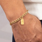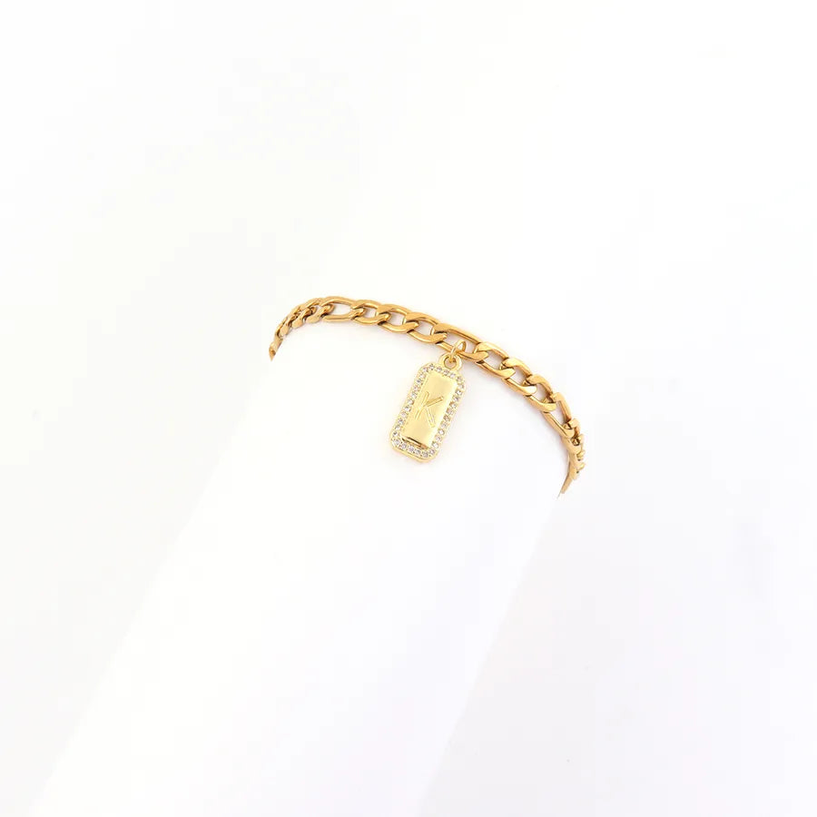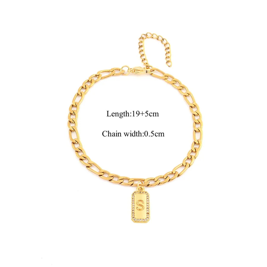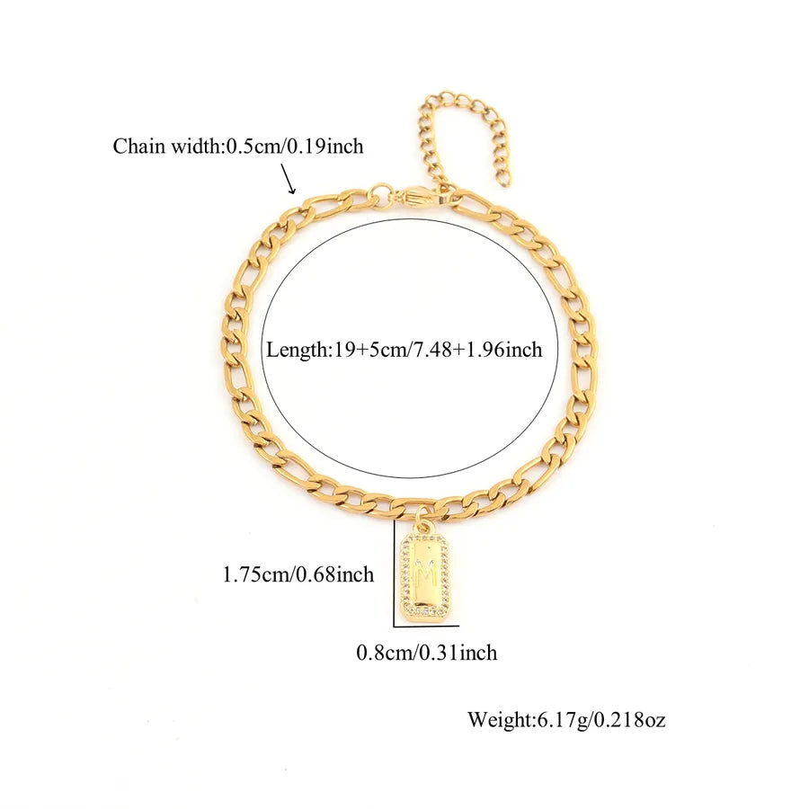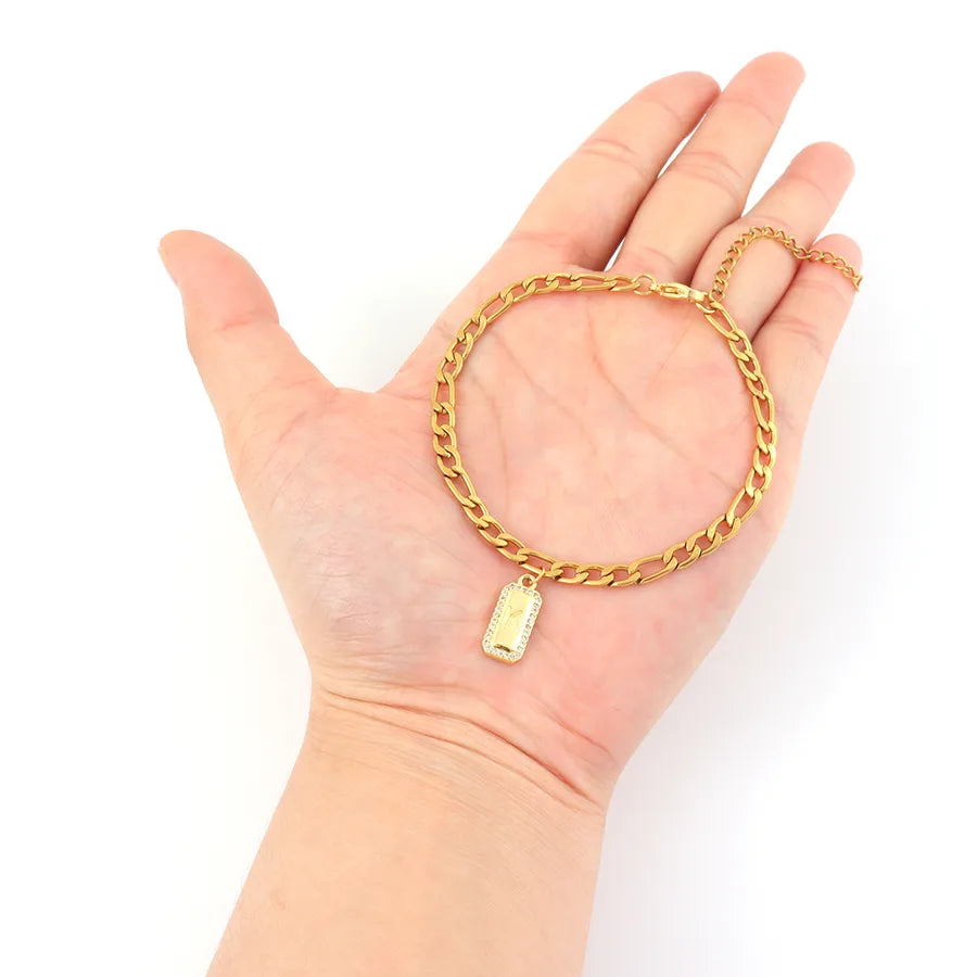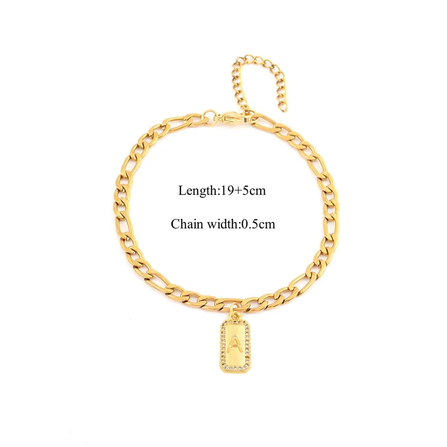 Fashionable Gold Plated Stainless Steel Men's Bracelet With Micro-Paved Zircon Rectangular Initials Design Casual Classic Style - Gold / A