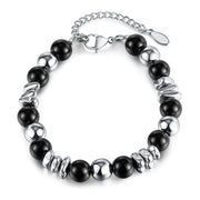 Fashionable Stainless Steel Bracelet Unisex Black Glass Beads Geometric Pattern Polished Finish Stylish Accessory For Men And Women - GS1495-steel Bracelet