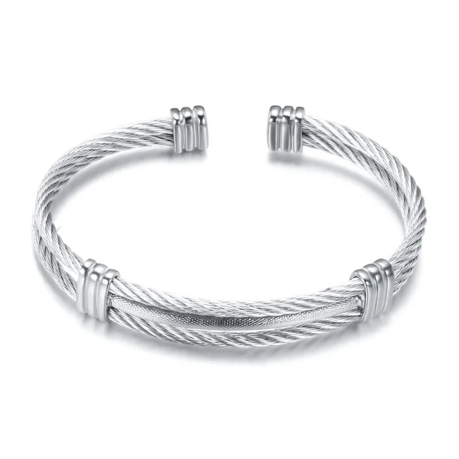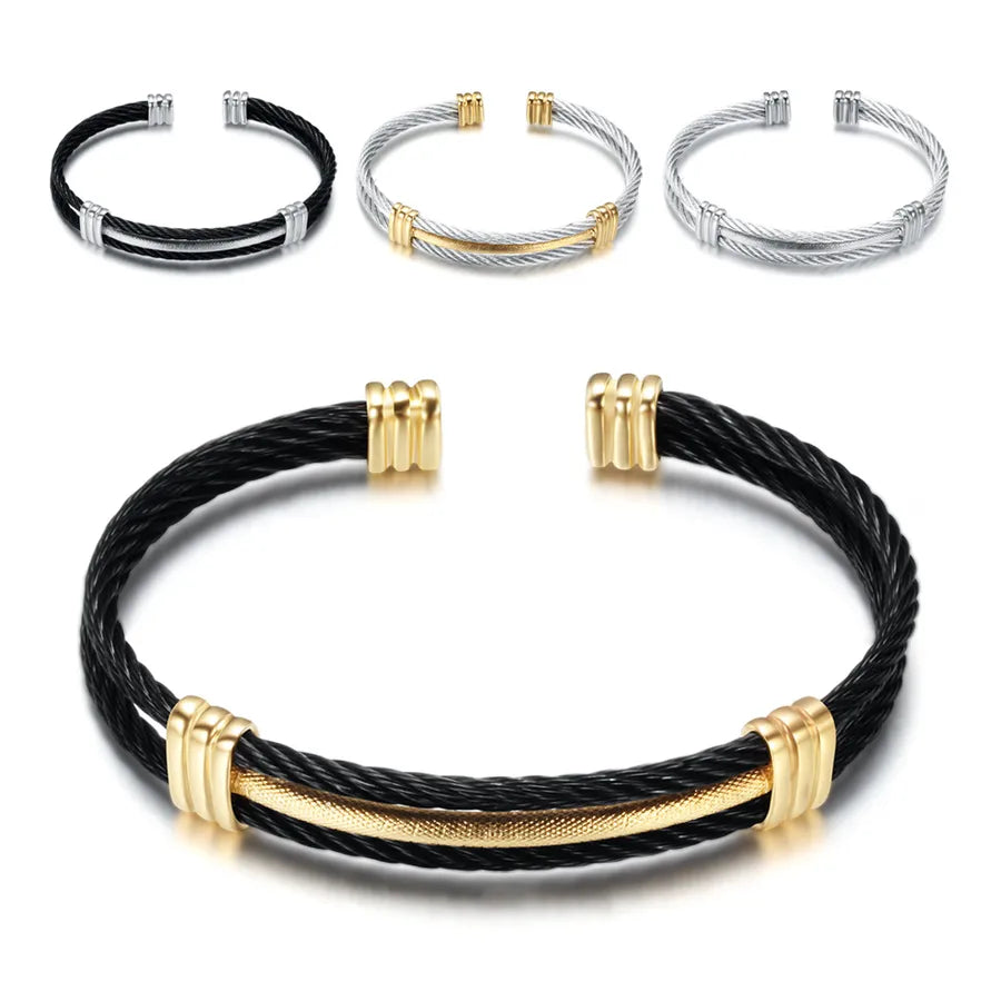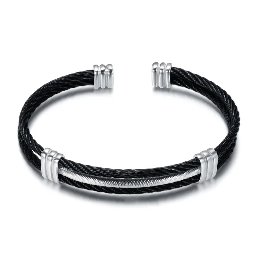 hip-hop color block stripe titanium steel plating men's bangle - Gun Black