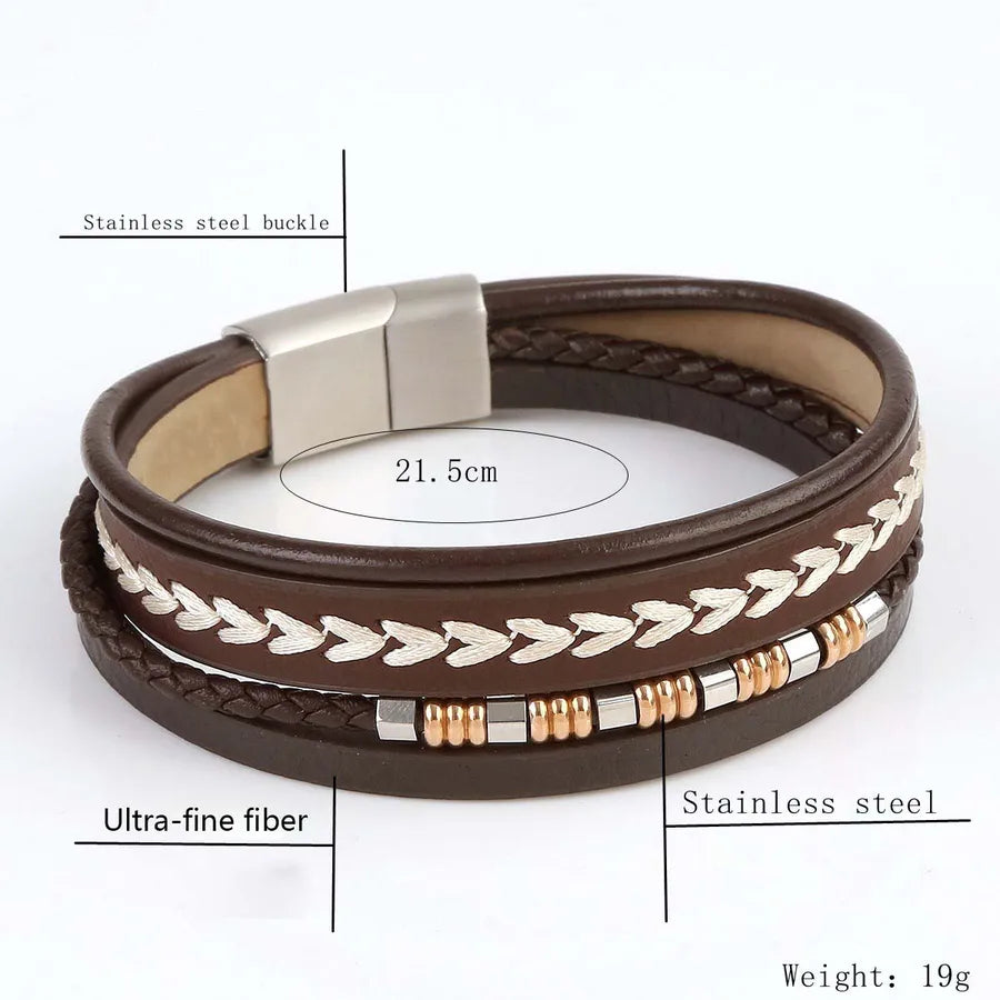 hip-hop retro grain stainless steel braid men's bangle - Coffee