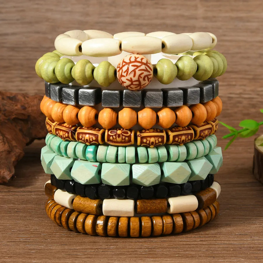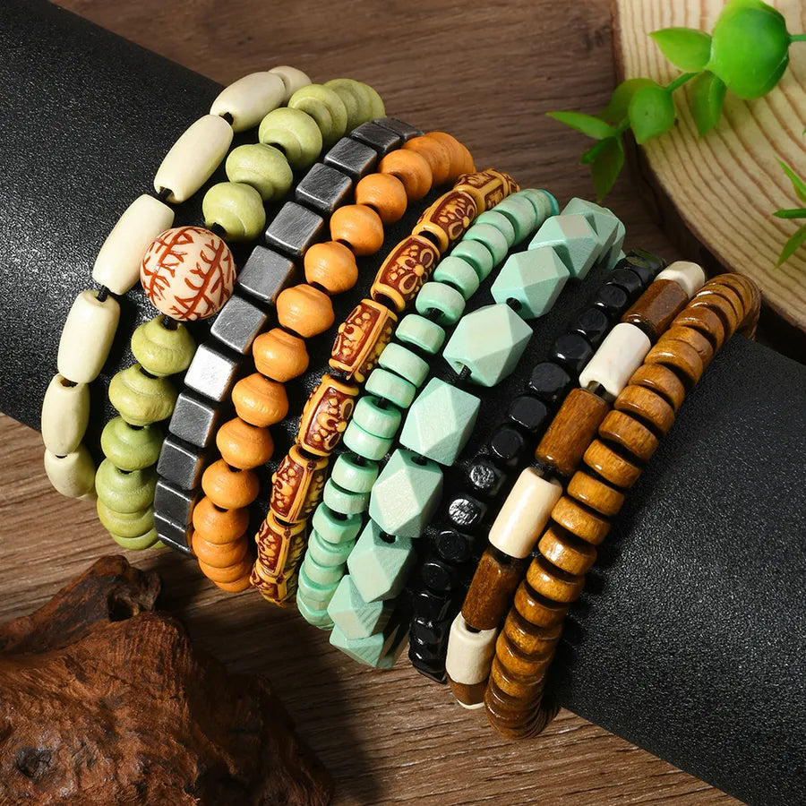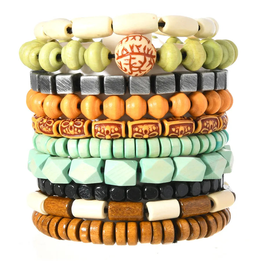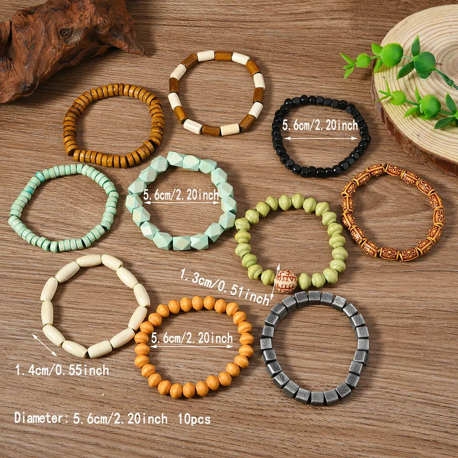 Hot Selling Bohemian Ethnic Style Vintage Handmade Beaded Bracelet Fashion All-Match Filament Bangle Jewelry - 10-Piece Set