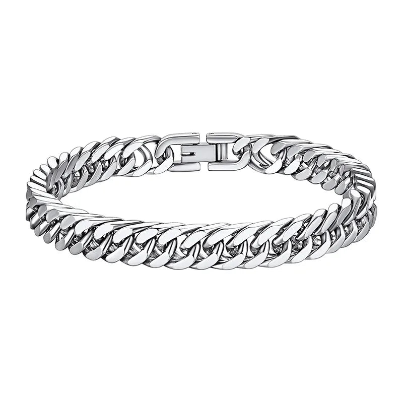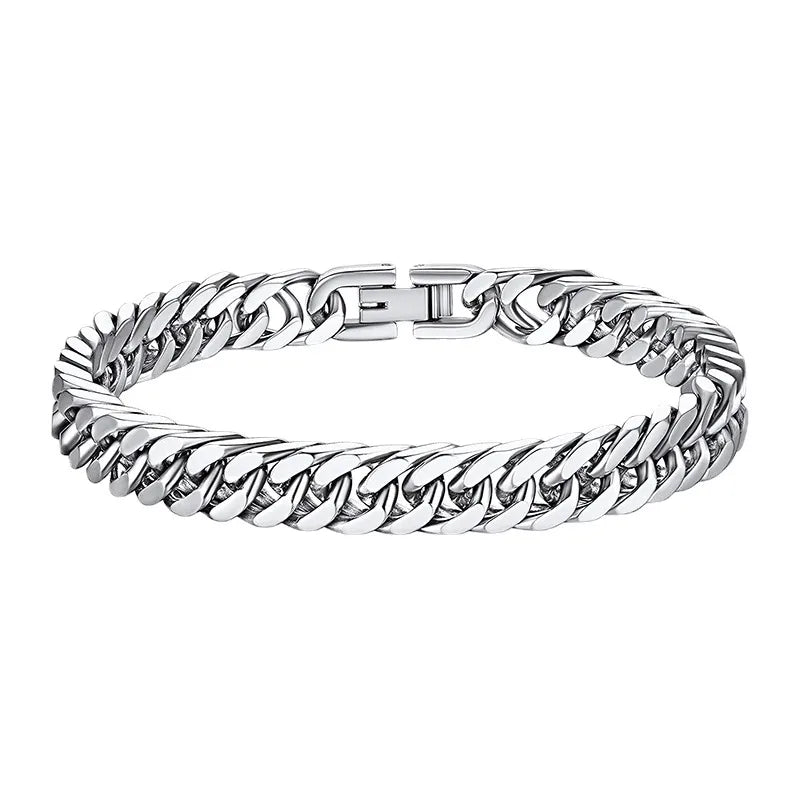 IG Style Punk Cool Style Geometric 304 Stainless Steel Plating Unisex Bracelets - Silver 8mm / 19cm
