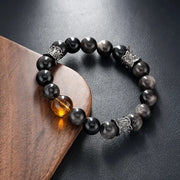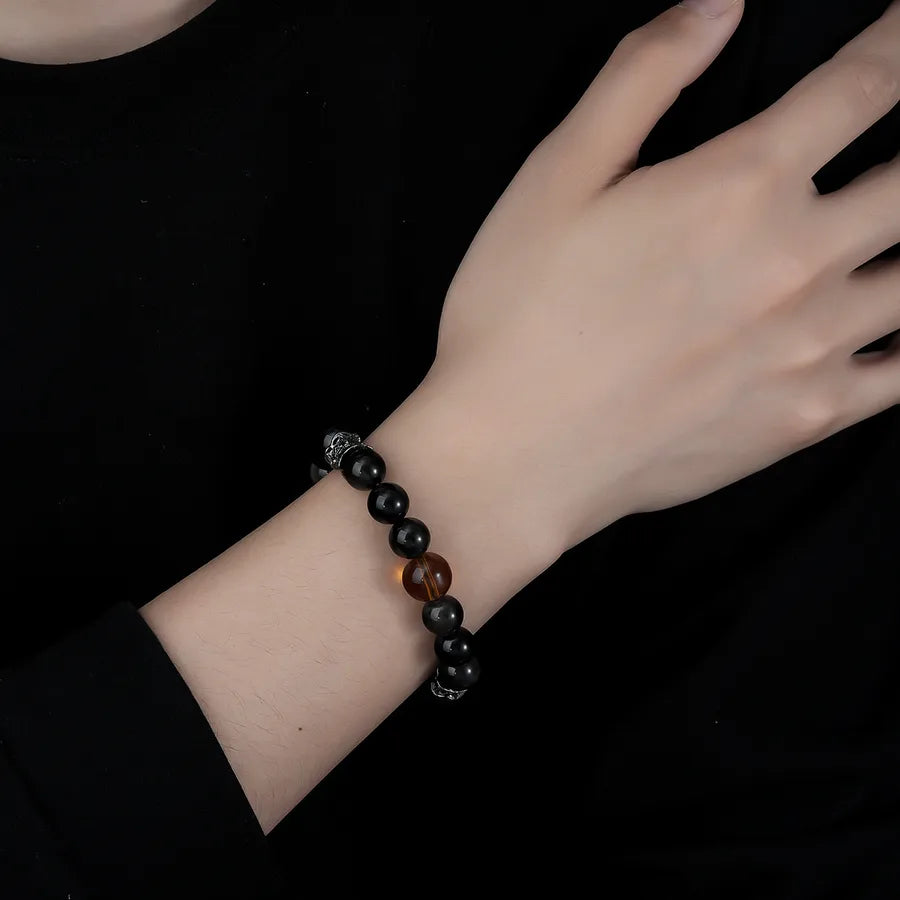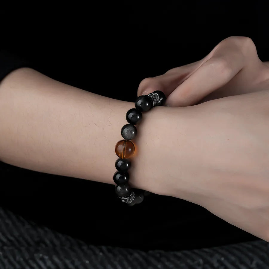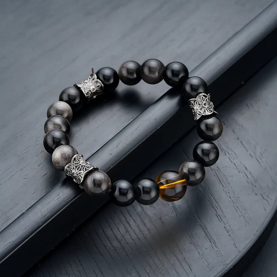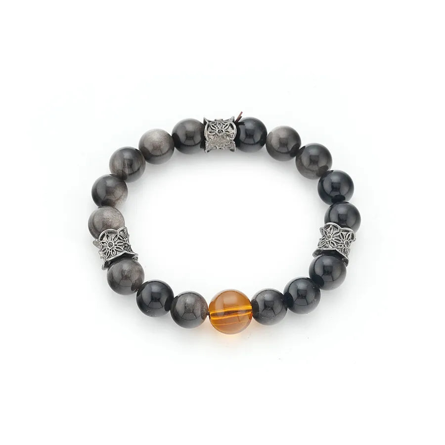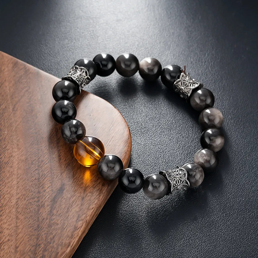 Natural Silver Agate Men's Bracelet Couple's Versatile Personality Matching Hand Chain Fashionable Geometric Pattern Unisex - Silver Obsidian Bracelet