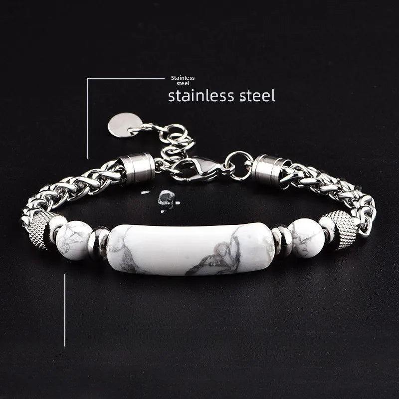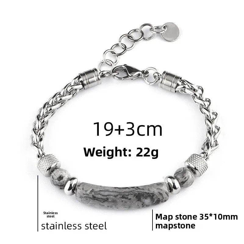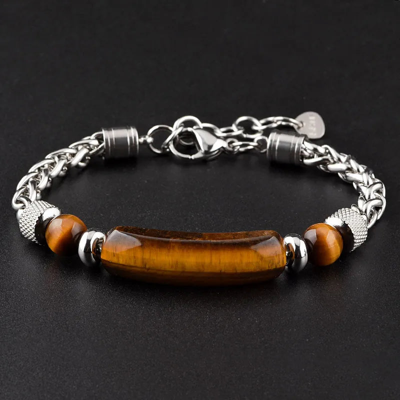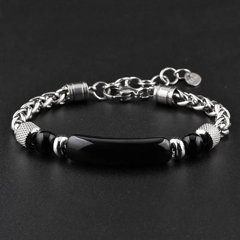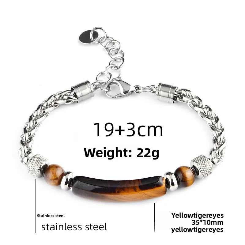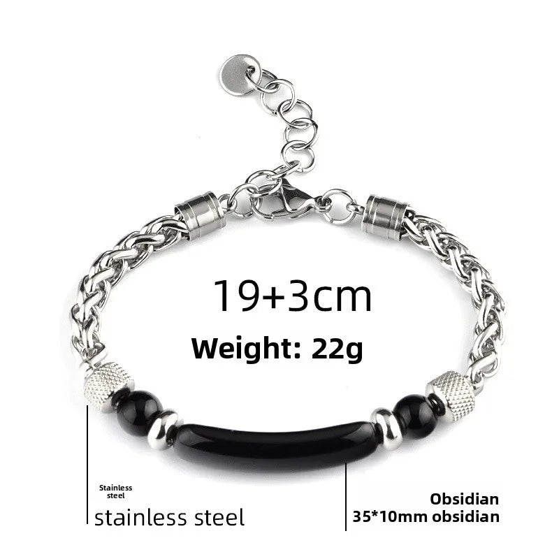 New Men's Stainless Steel Bridge Stones Hand Bracelet Tiger Eye Stone Beaded Wristwear Business Casual Unisex Geometric Pattern - Stainless Steel Obsidian Bridge Bracelet I