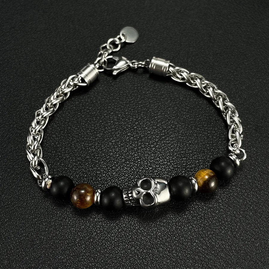 OPK Stylish Vintage Men's Bracelet Stainless Steel Skull Head Splicing Tiger Eye Stone Titanium Steel Hand Jewelry - GS1475-steel Bracelet