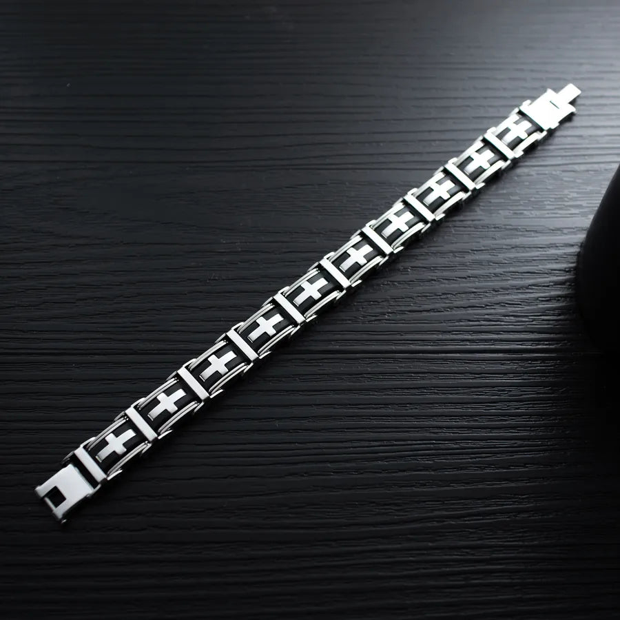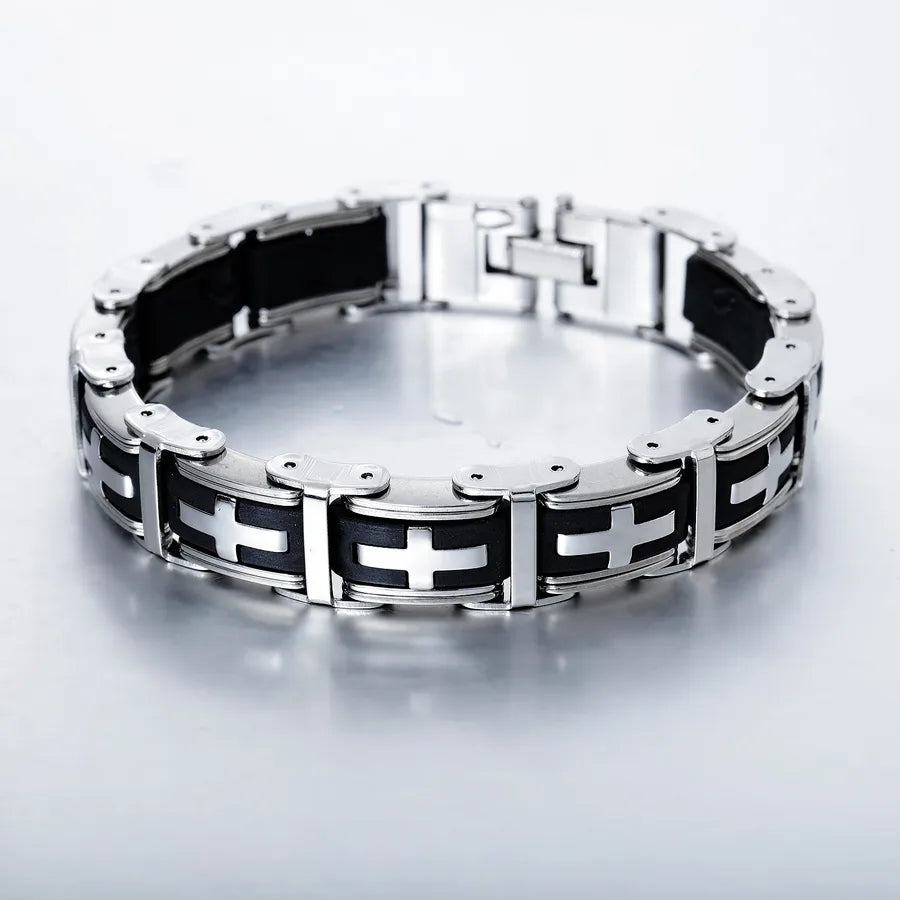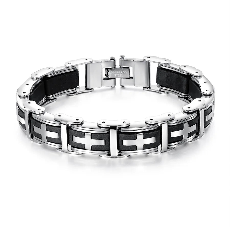 Personalized Hot Creative Ornament Men's Bracelet Classic Cross Stainless Steel Silica Gel Bracelet Holiday Gift - [957] Bracelet