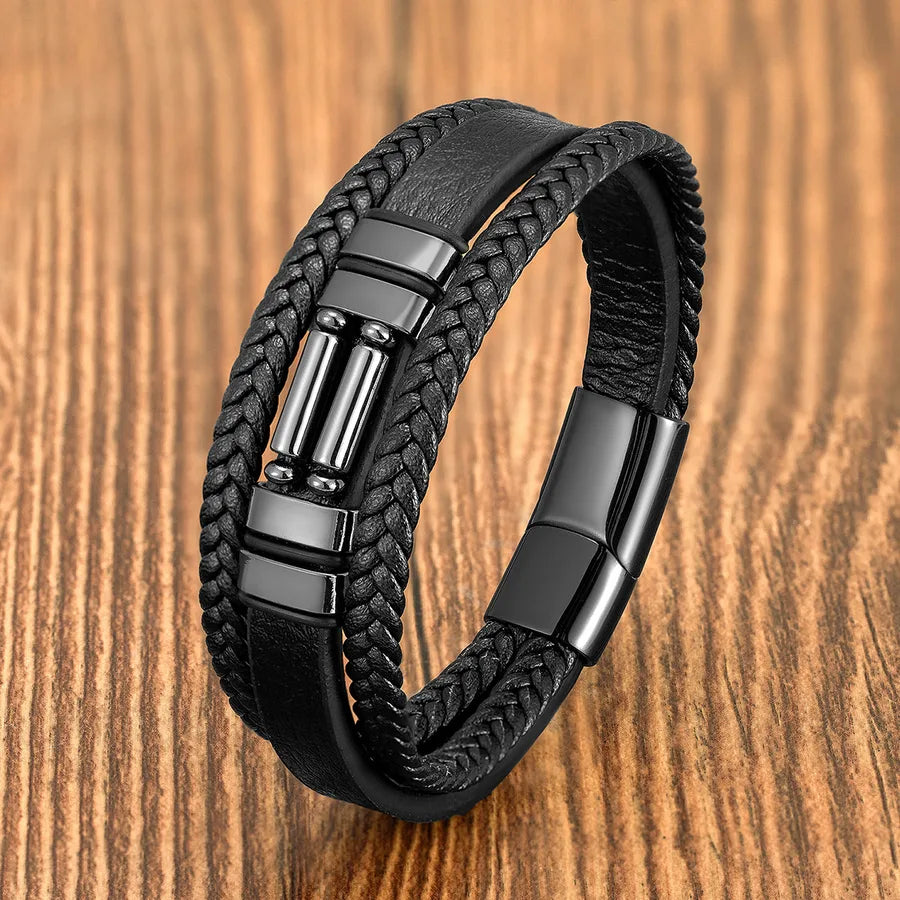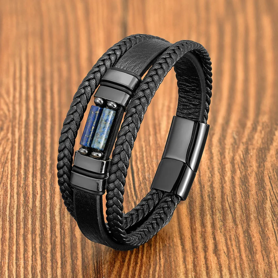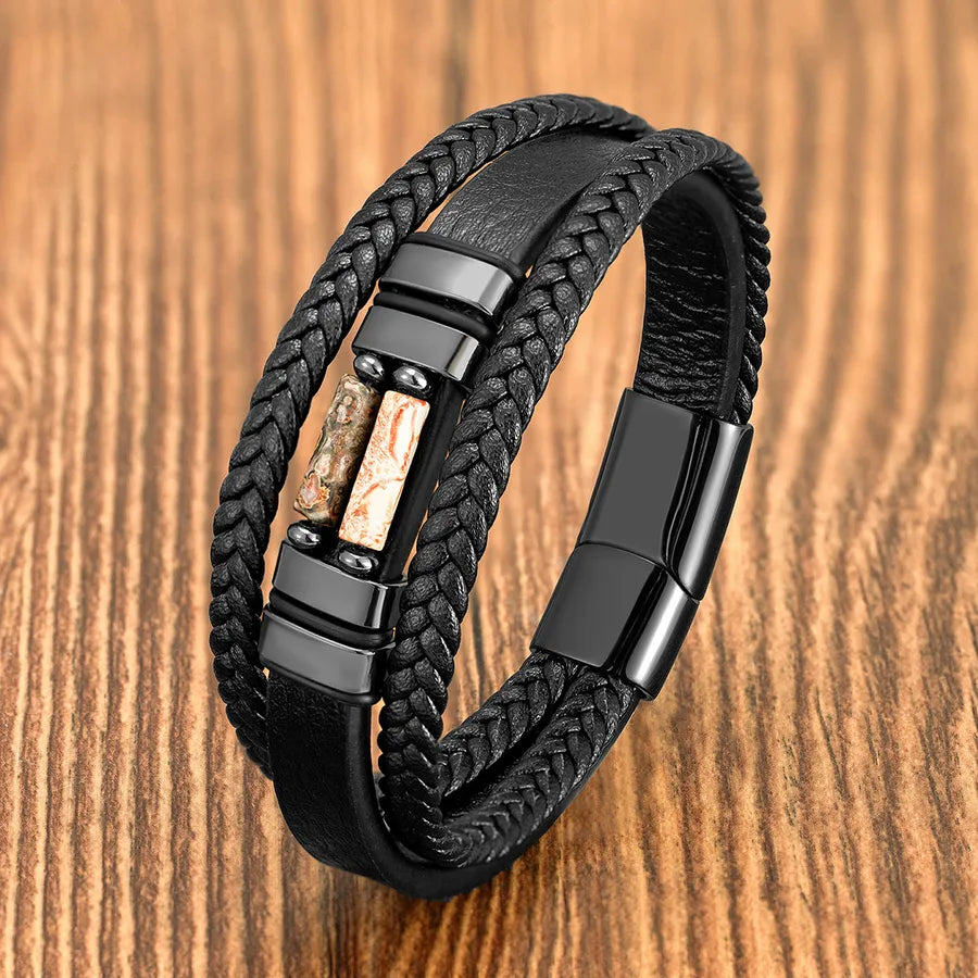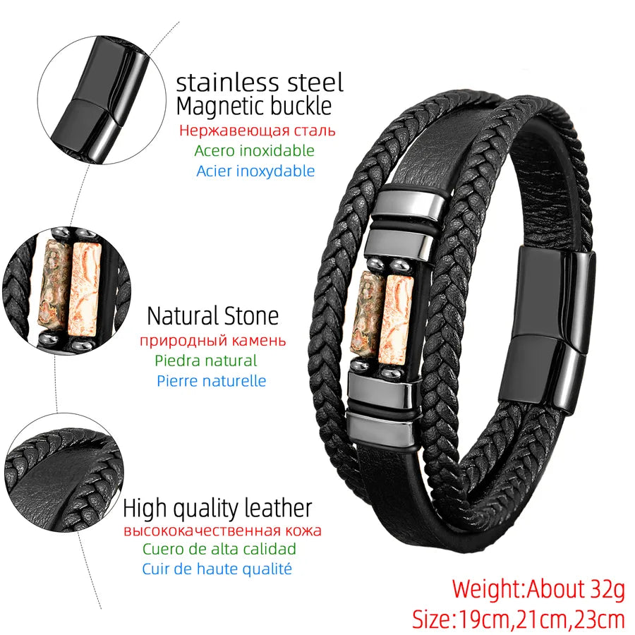 Retro Punk Geometric Cross 316 Stainless Steel Alloy Stone Men's Bracelets - 19cm / Haematite