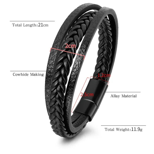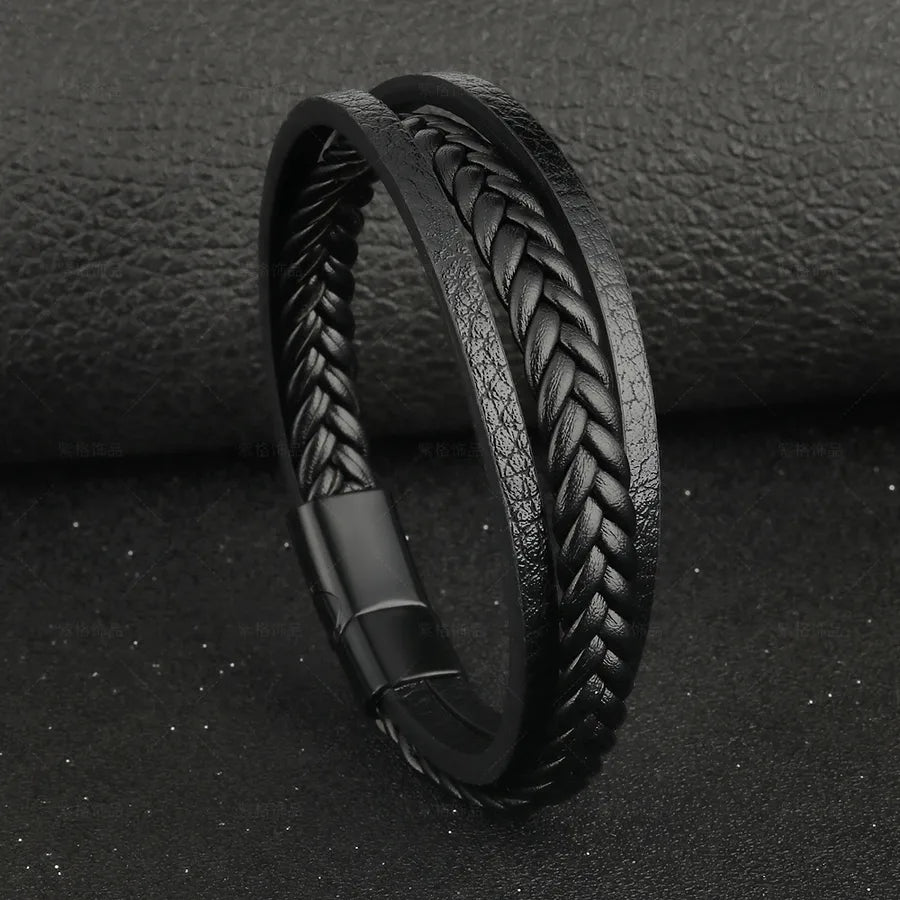 Retro Streetwear Geometric Pu Leather Alloy Men's Bracelets Men Cord & Leather Bracelets - Blue