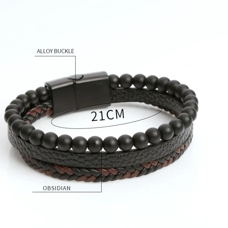 Simple Style Geometric Pu Leather Alloy Beaded Men's Bangle - obsidian