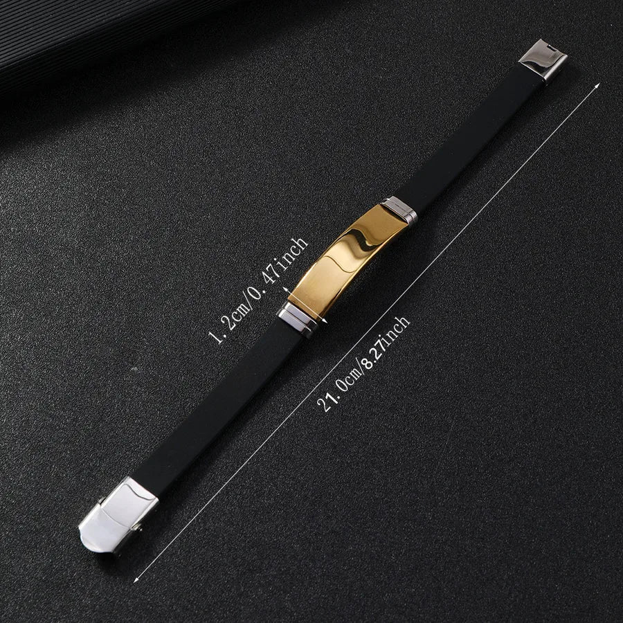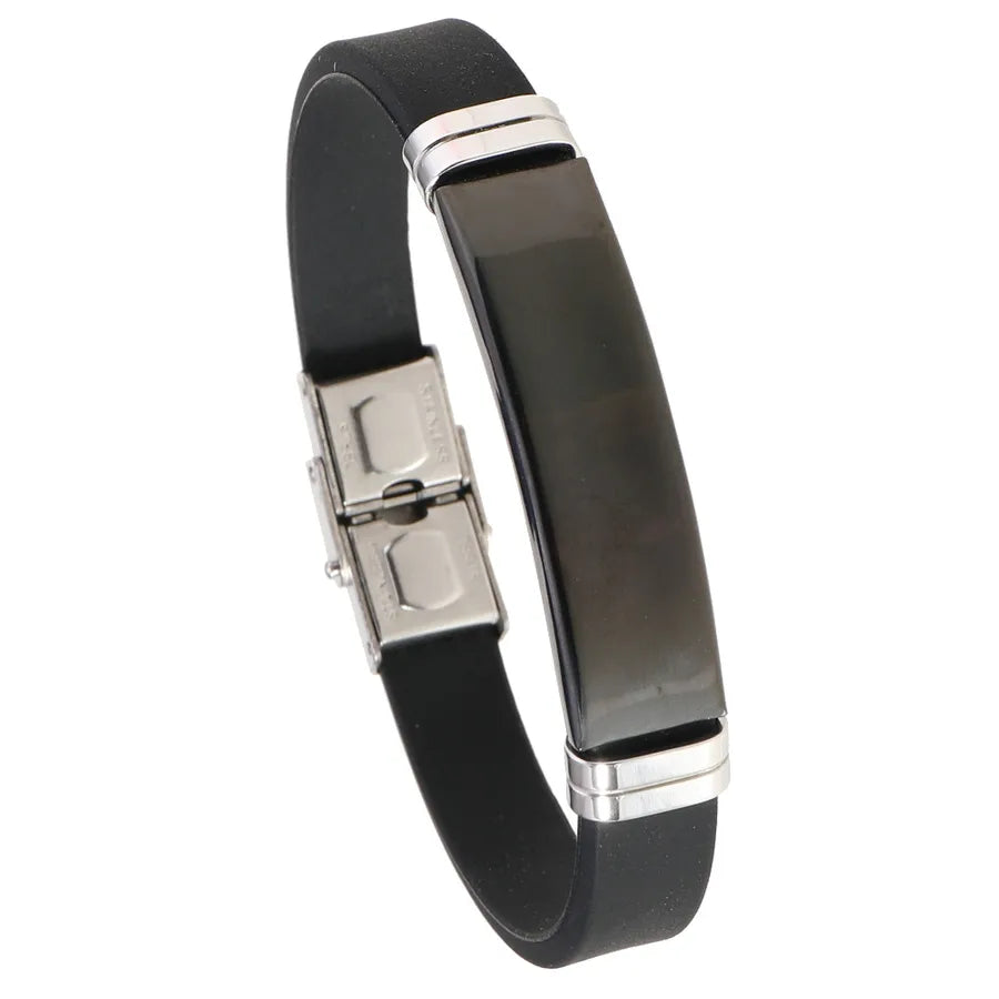 Simplified Engraved Black Stainless Steel Silicone Bracelet Men's Promotional Advertising Gifts Polished Finish Unisex - Black
