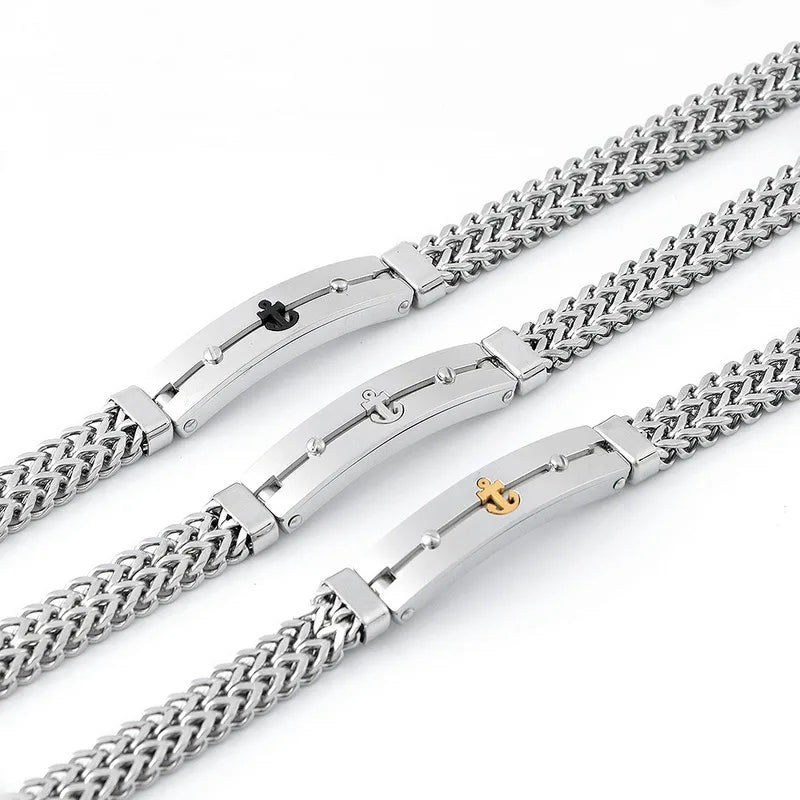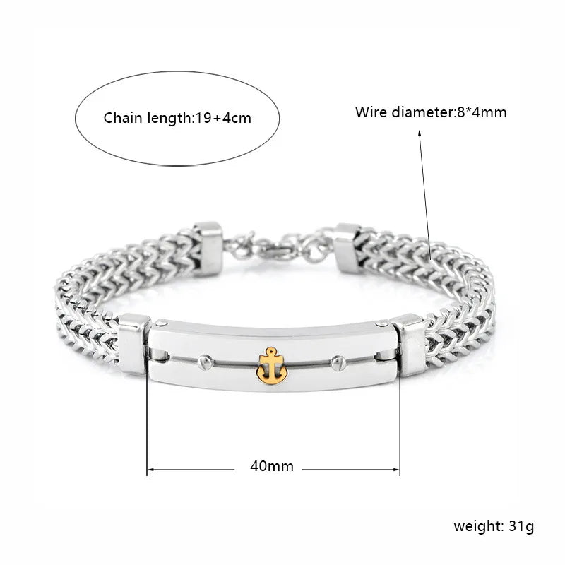 Stainless Steel Bracelet Men's Fashion Jewelry Aggressive Personality Design Style Polished Anchor Chain - [Sle146] Curb Necklace Steel Color-Np04 Gold