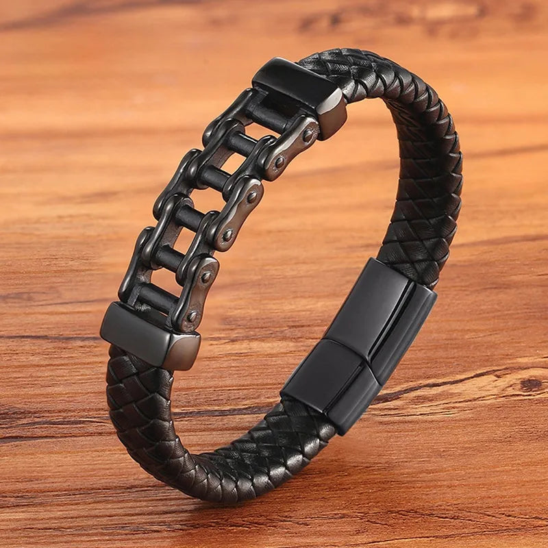 Stainless Steel Leather Braided Bracelet Men's Genuine Cowhide Jewelry Titanium Steel U-Shaped Pattern European Style