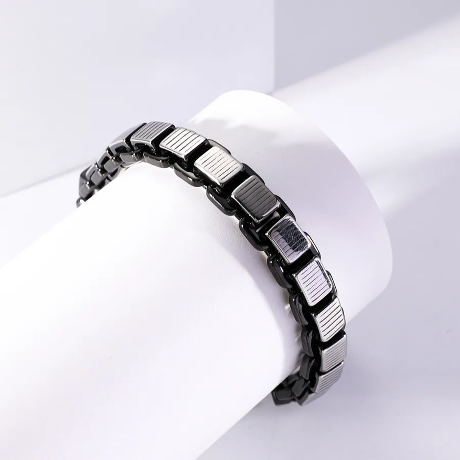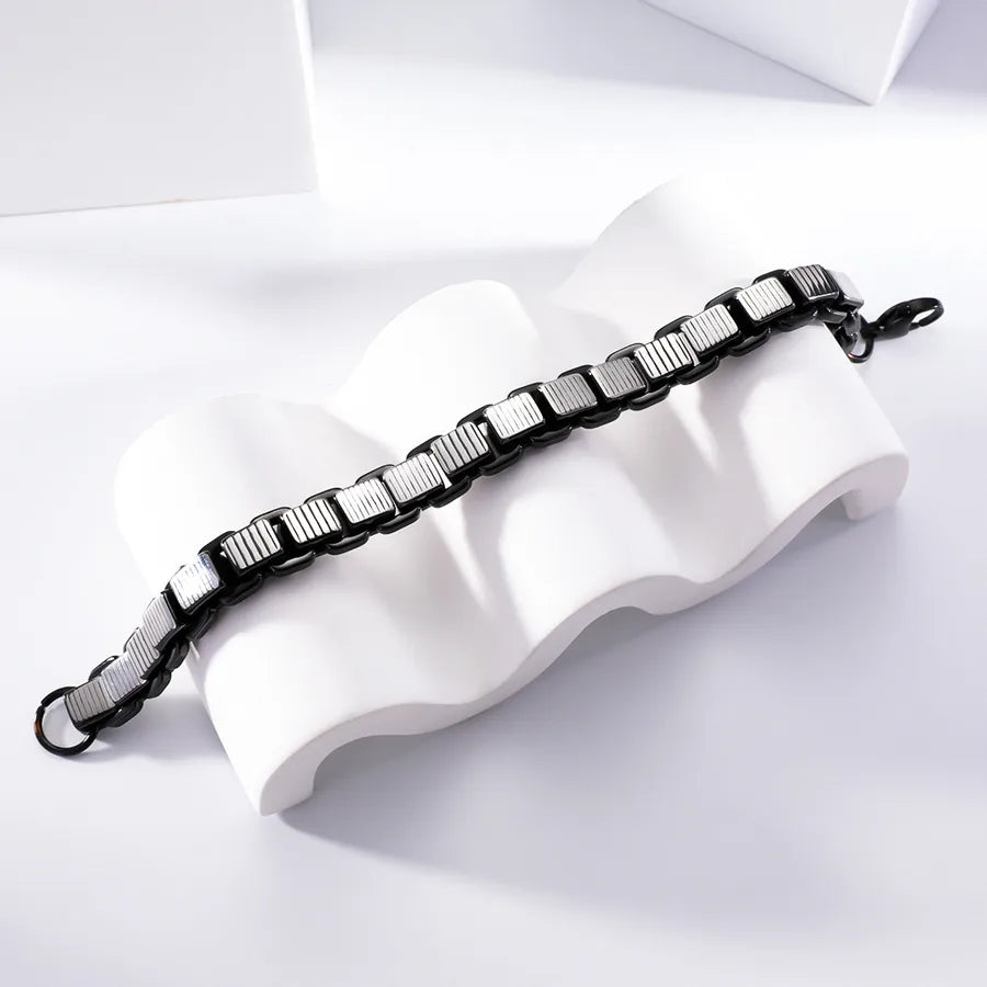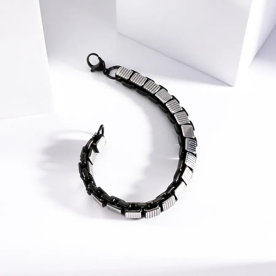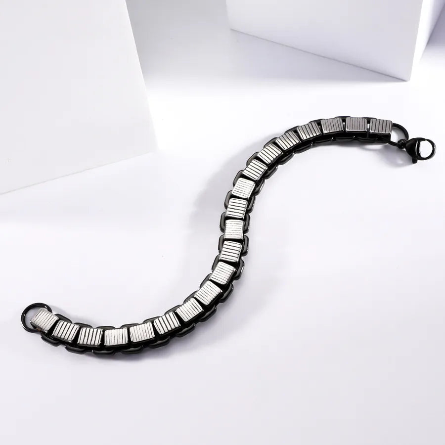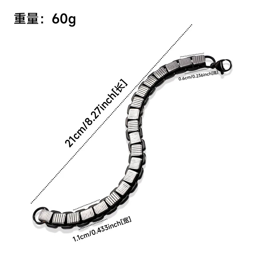 Stainless Steel Square Charm Bracelet For Men Fashionable Dominant Personality Hand Accessory Hip Hop Style Geometric Pattern - Width 1.1cm Black M10-13