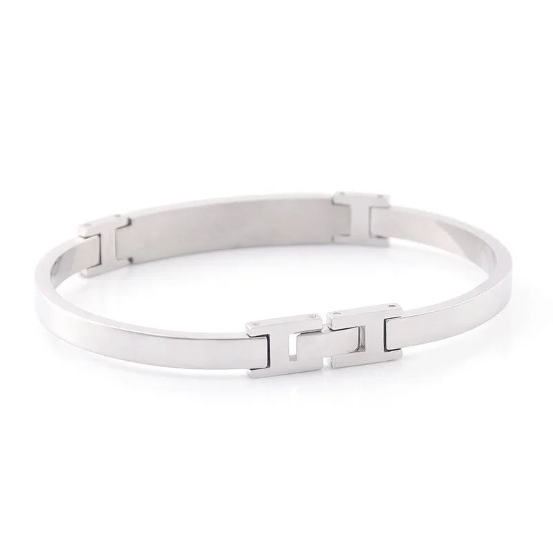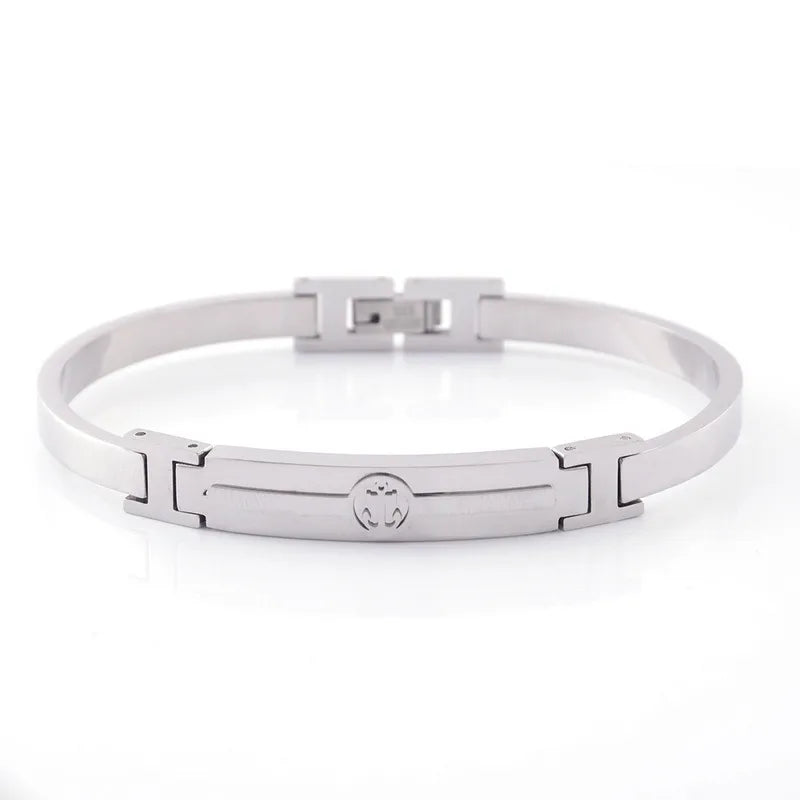 Stainless Steel Titanium Men's Bracelet Simple Fashion Versatile Band Ins Style Square And Plated Anchor Craft Hand Chain - Steel Color