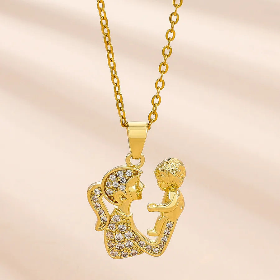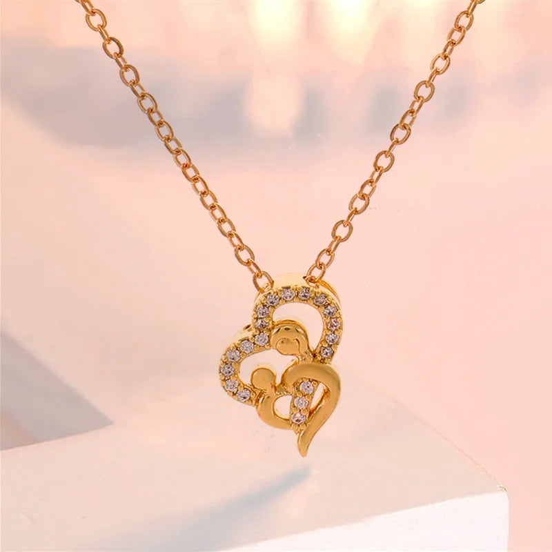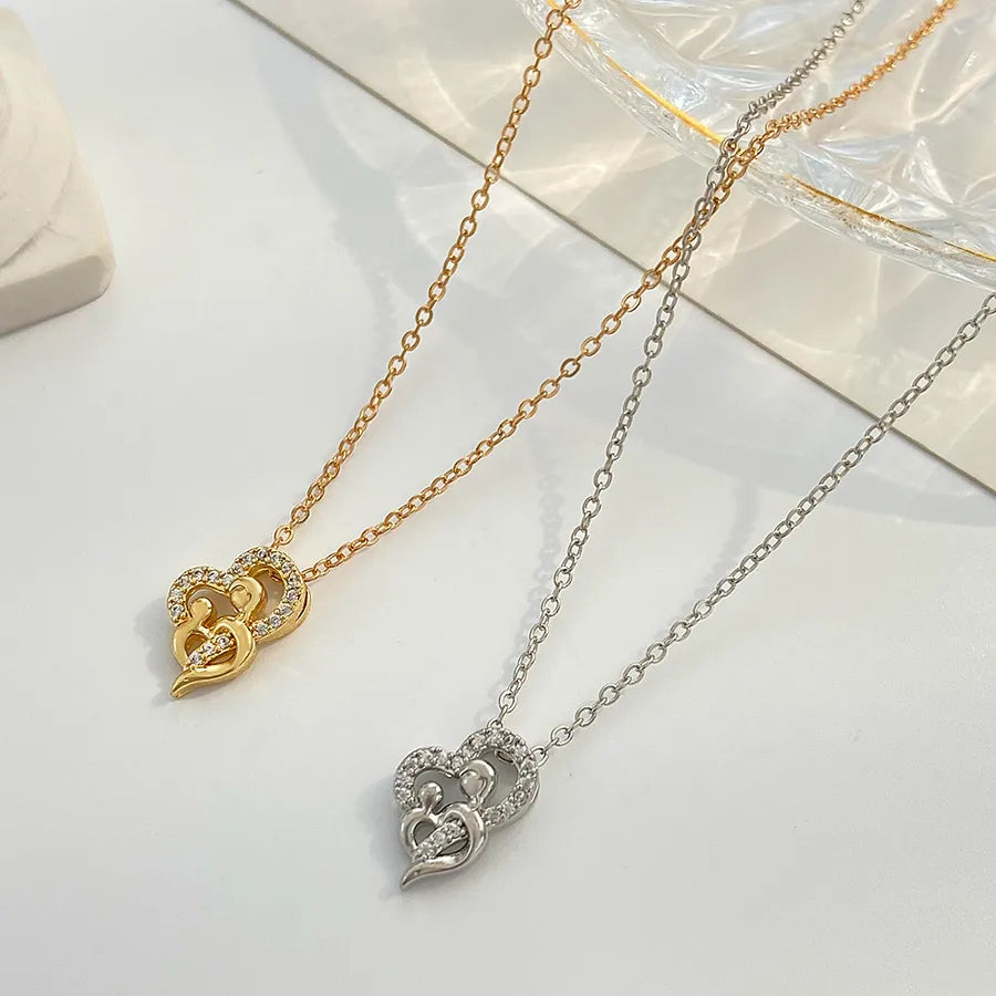 1 piece fashion mama heart shape alloy plating inlay rhinestones 14k gold plated mother's day pendant necklace - Gold Foil KC Gold