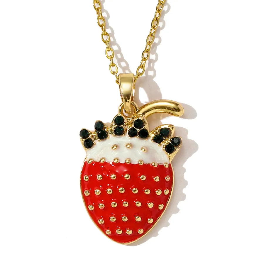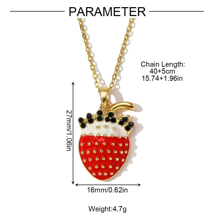 18K Gold Plated Strawberry Pendant Necklace For Women Cute Diamond Embedded Casual Travel Everyday Alloy Material Stainless Steel Chain Lobster Clasp - 40+5cm / Gold