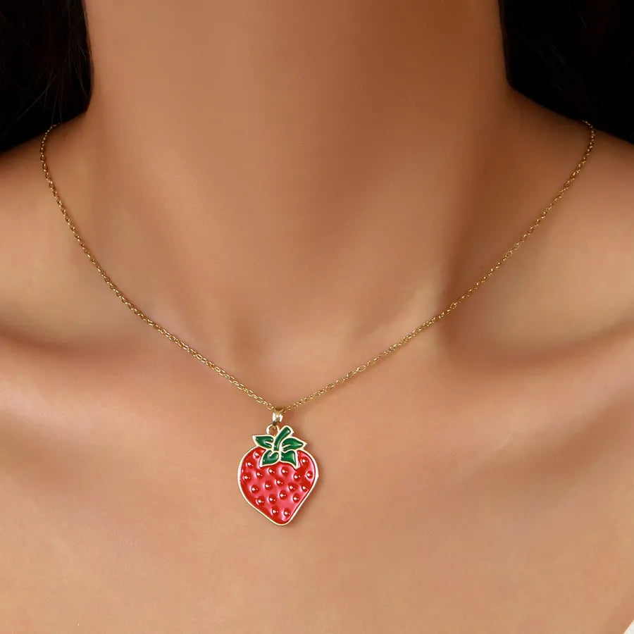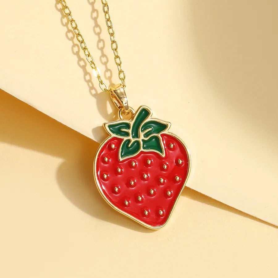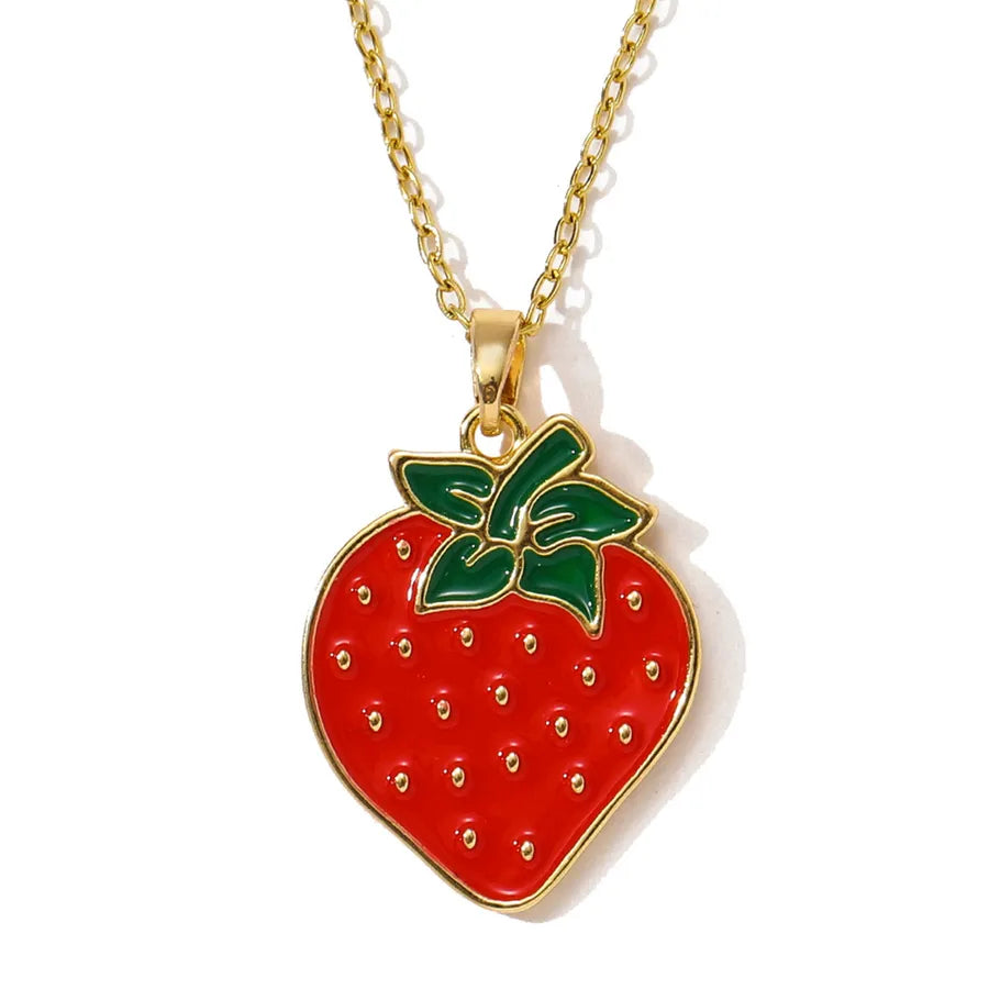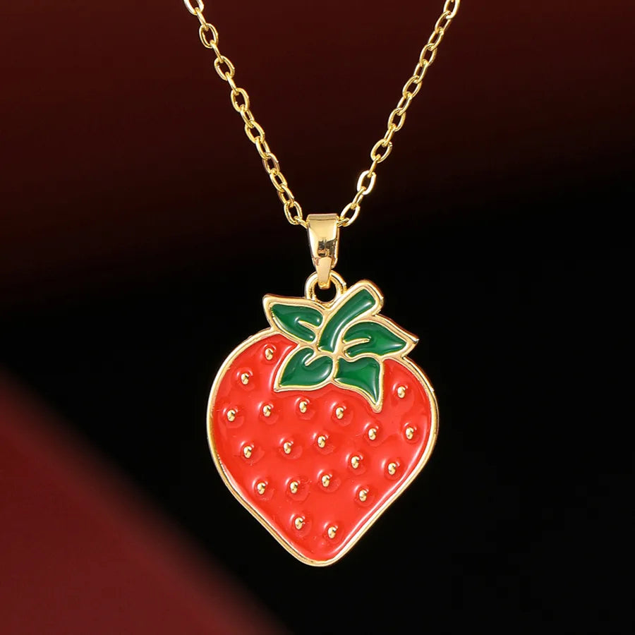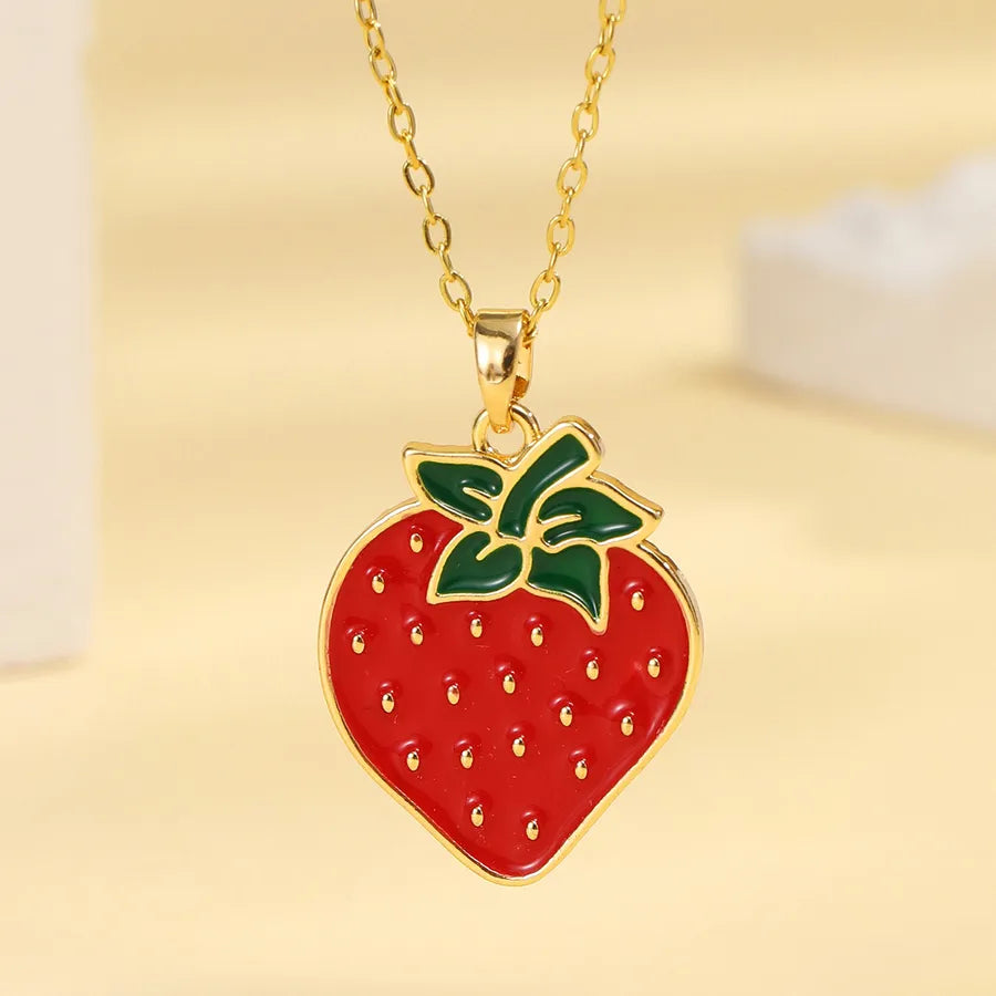 18K Gold Plated Strawberry Pendant Necklace Women's Style Casual Travel Everyday Alloy Material Stainless Steel Chain Lobster Clasp