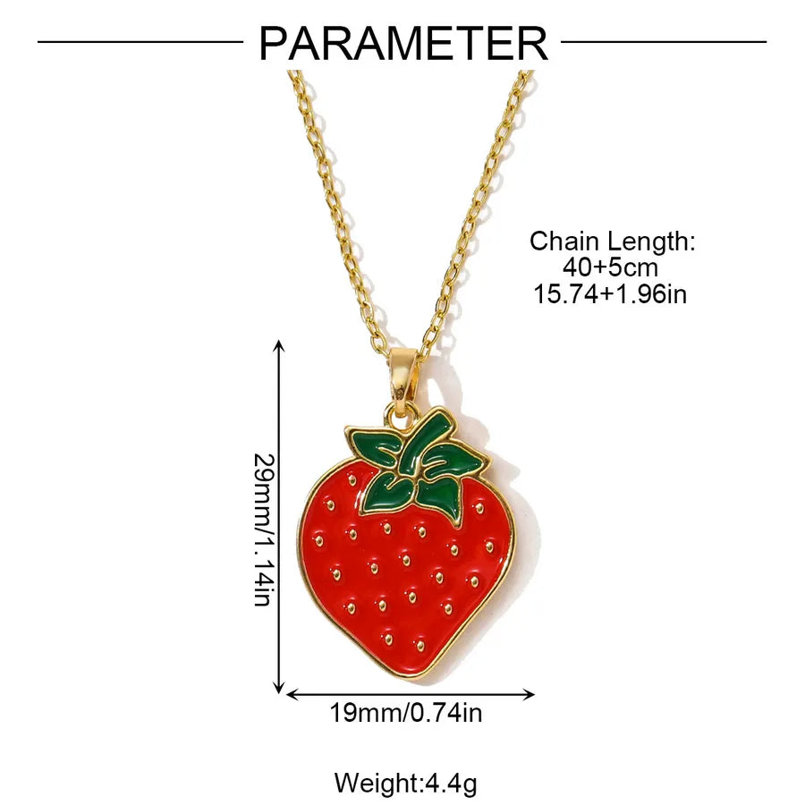 18K Gold Plated Strawberry Pendant Necklace Women's Style Casual Travel Everyday Alloy Material Stainless Steel Chain Lobster Clasp - 40+5cm / Gold