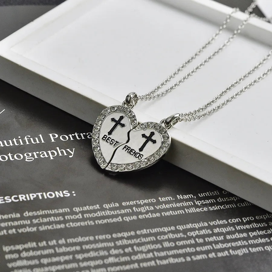Best Friends Necklace Style Heart Shape Pendant Alloy Geometric Pattern Simple Style Unisex Necklace - Cross Love Pair