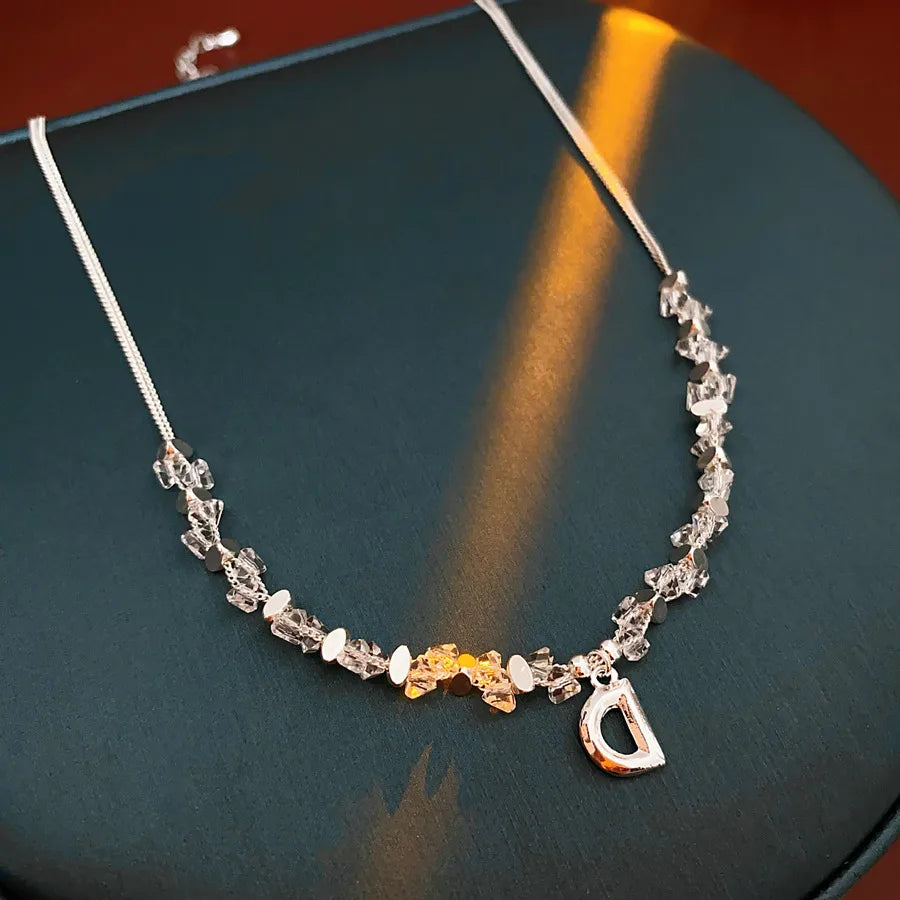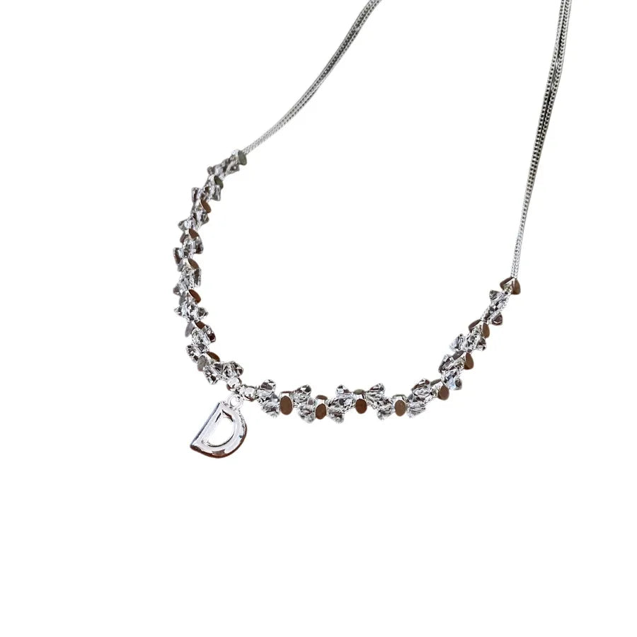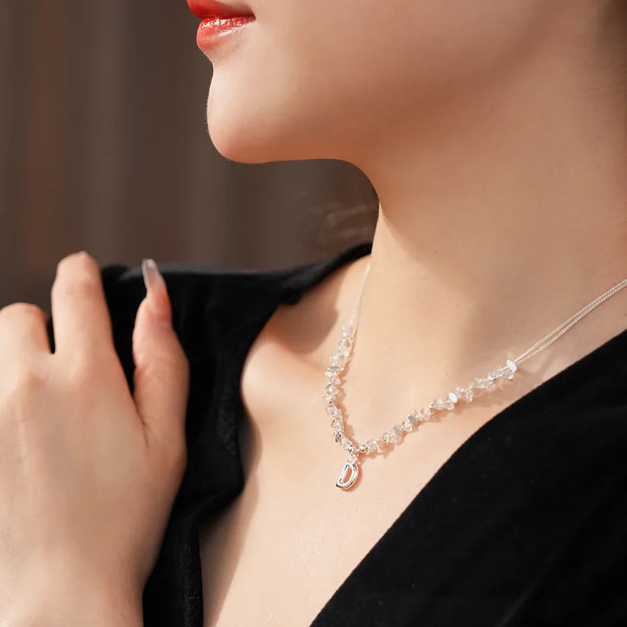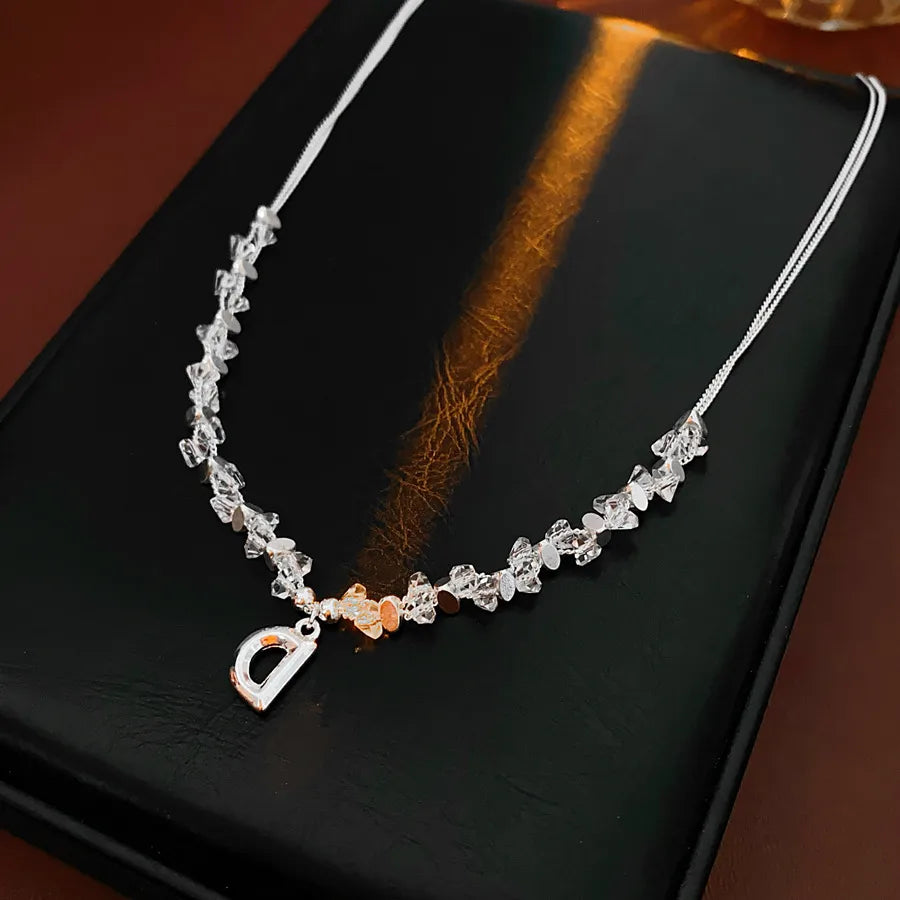 Broken Silver Crystal String Beads Necklace Light Luxury Cold Style Multi-Functional Pendant Clavicle Chain Versatile High Sense Fashion Ornament Ladies - Silver