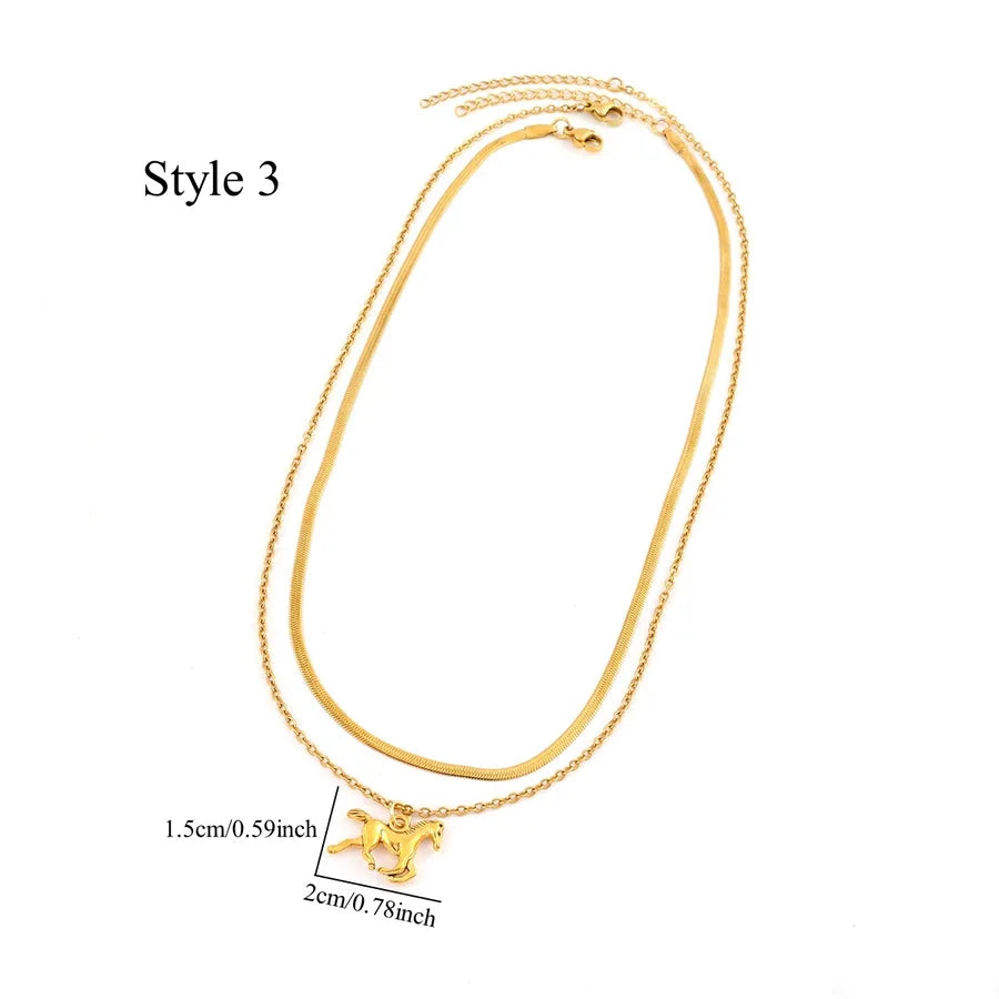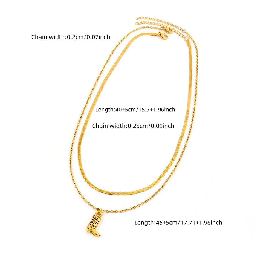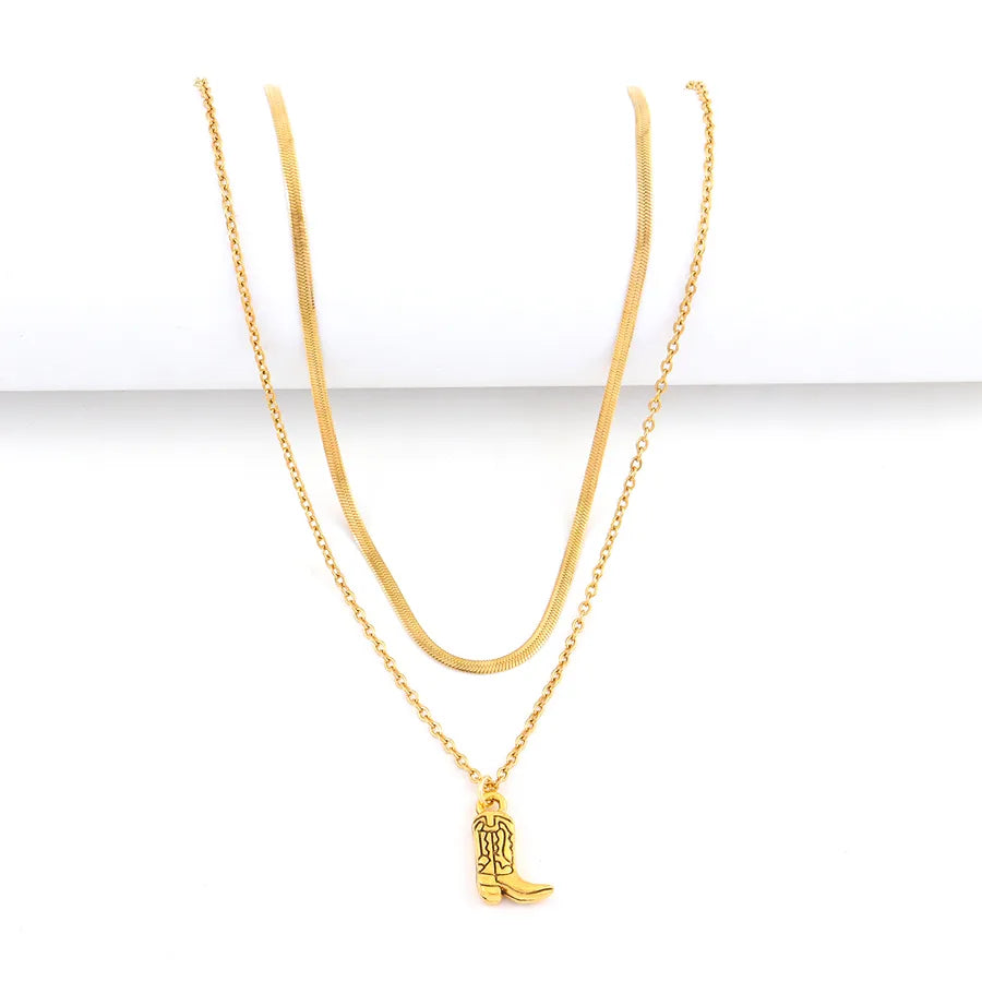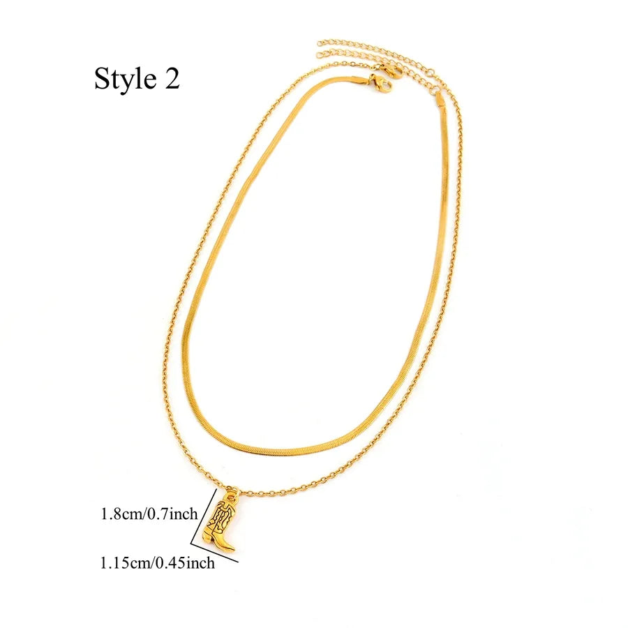 Casual Cowboy Style Simple Style hat Boots Horse 201 Stainless Steel Alloy snake chain Lobster Trigger Clasp Closure Pendant Necklaces Wholesale - Gold / Style1