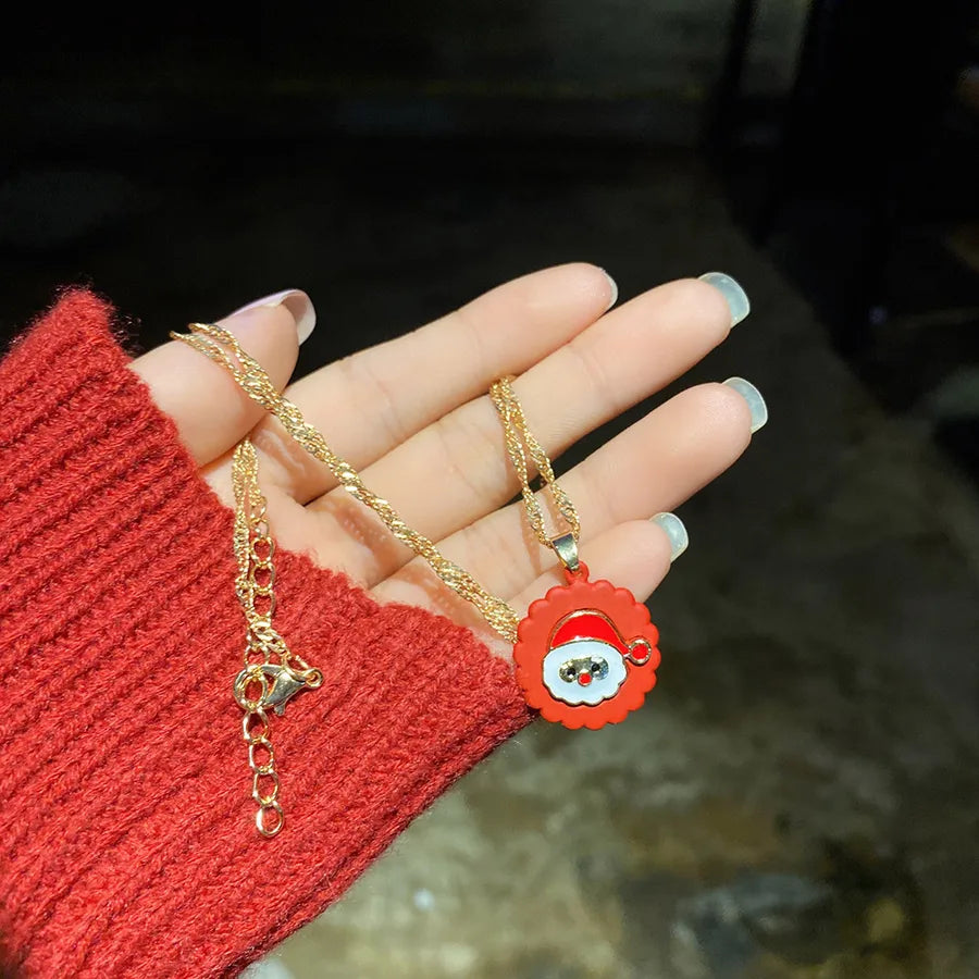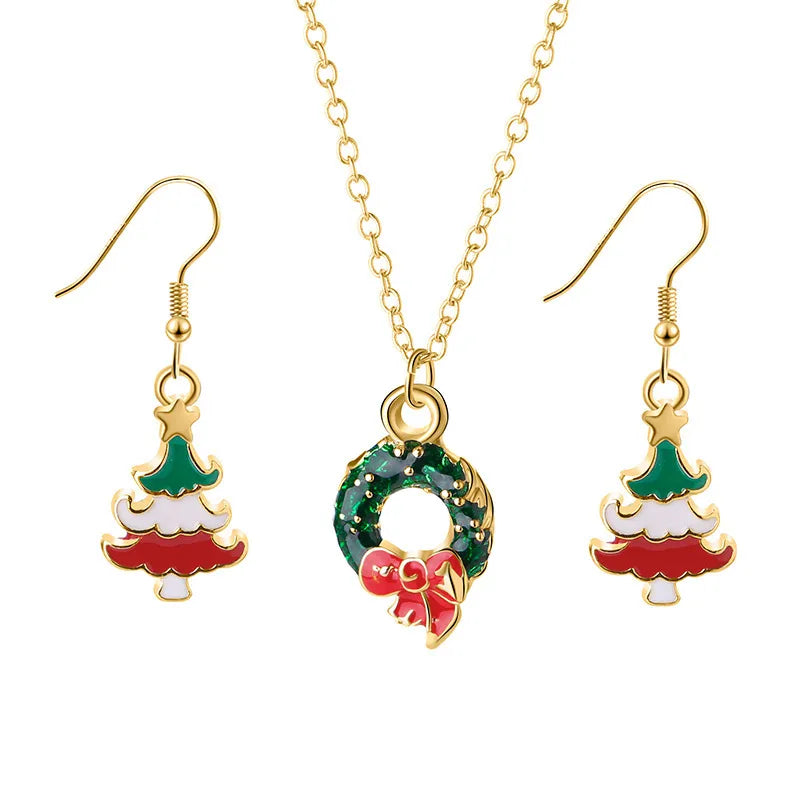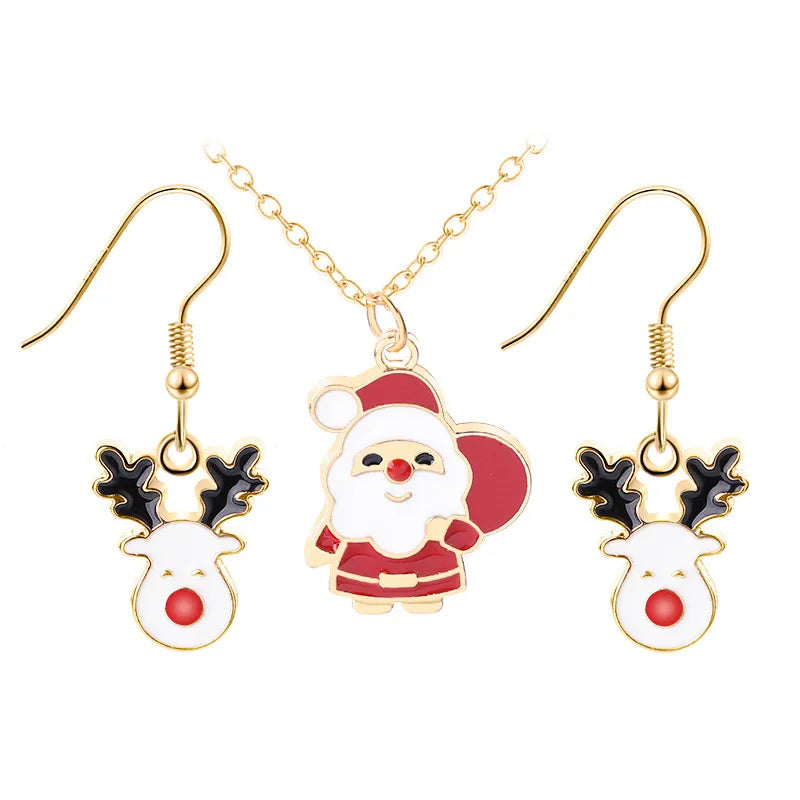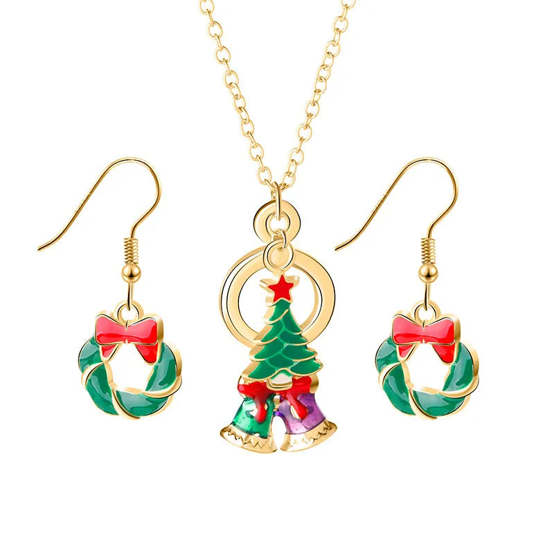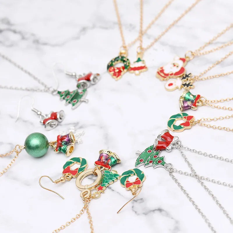 Christmas Santa Claus Bell Pendant Snowman Hoop Earrings Necklace Set Alloy Geometric Pattern Simple Style Electroplated Jewelry - A2233