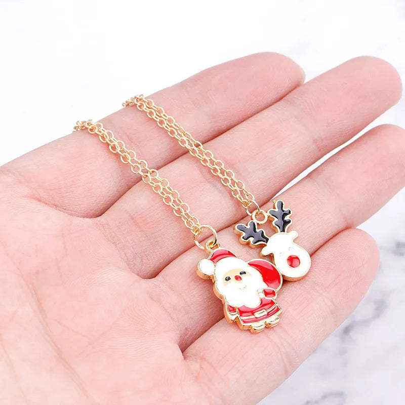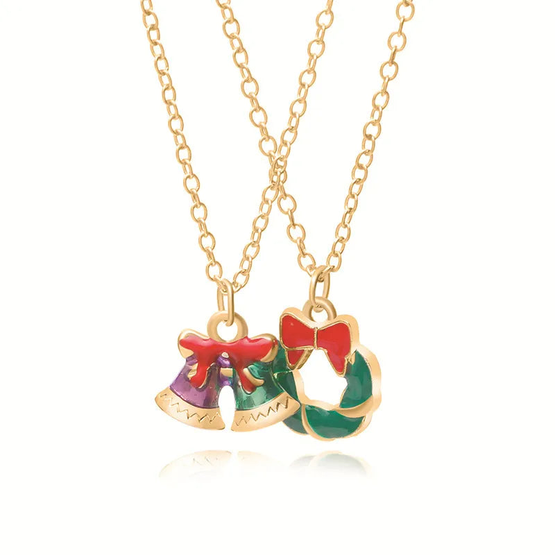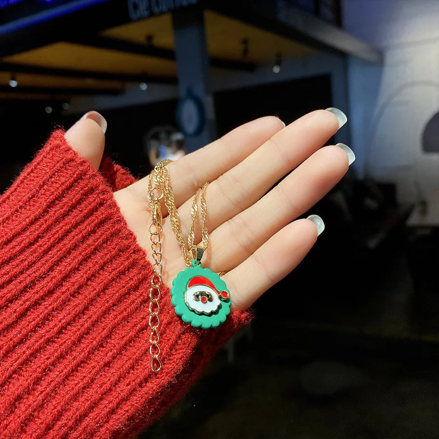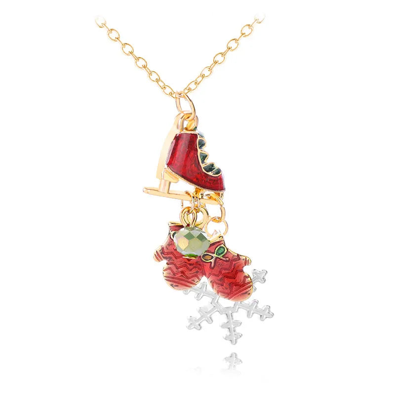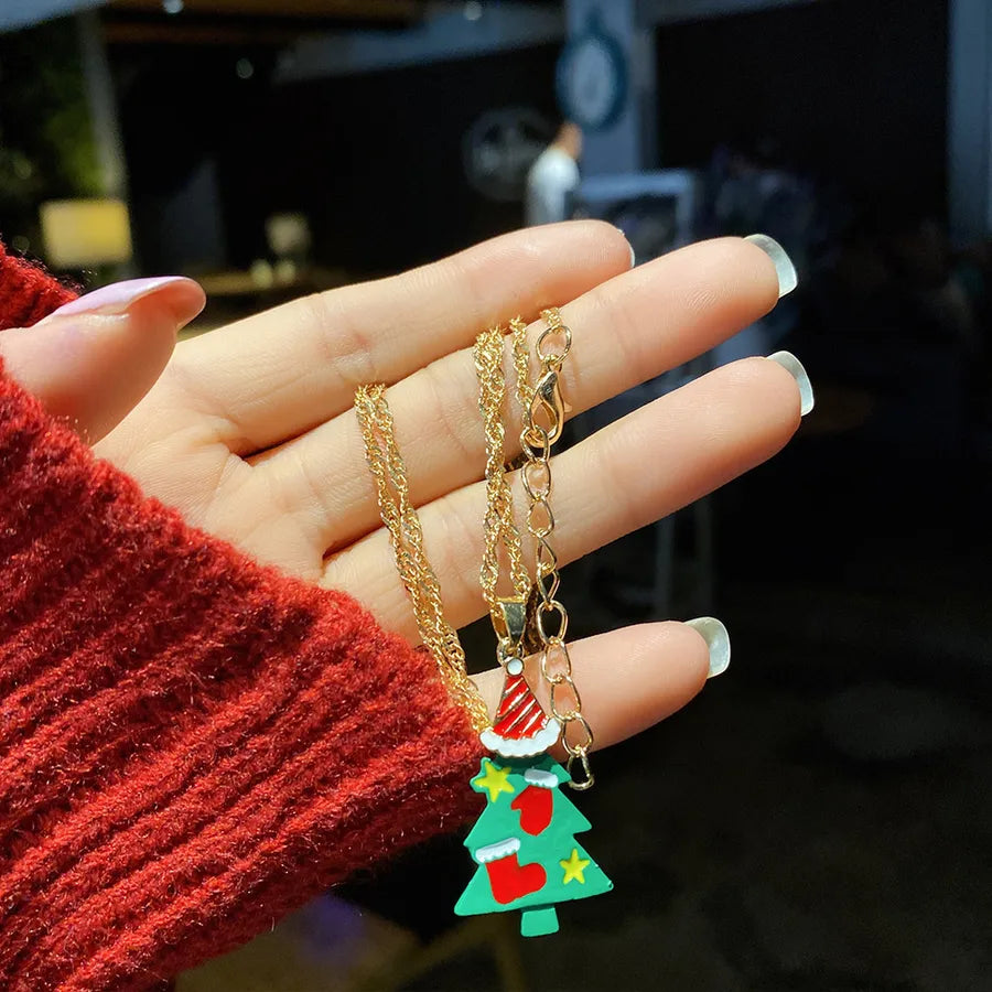 Christmas Santa Claus Bell Pendant Snowman Hoop Earrings Necklace Set Alloy Geometric Pattern Simple Style Electroplated Jewelry - A2233