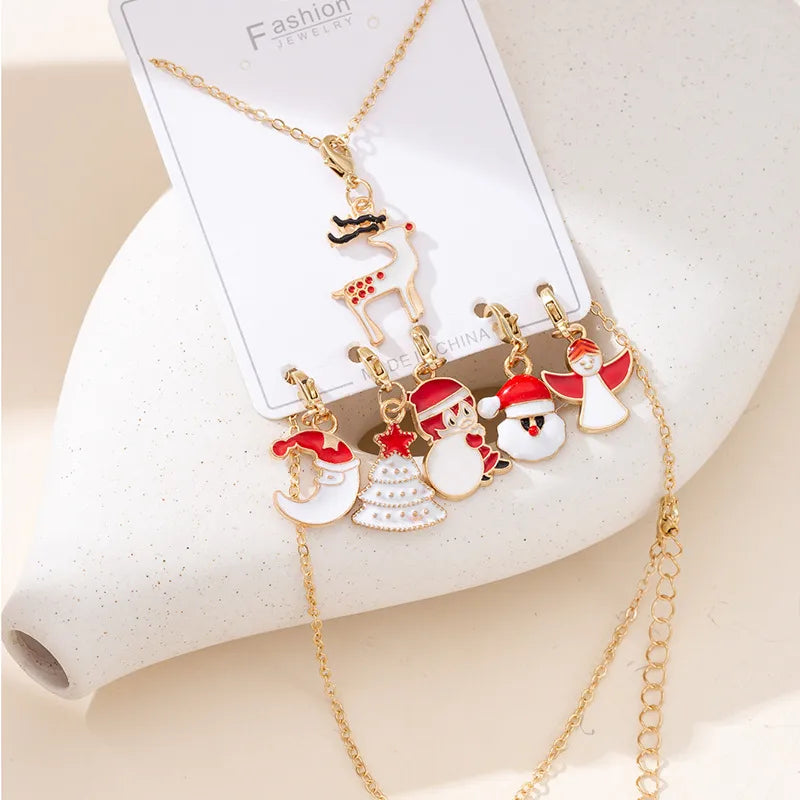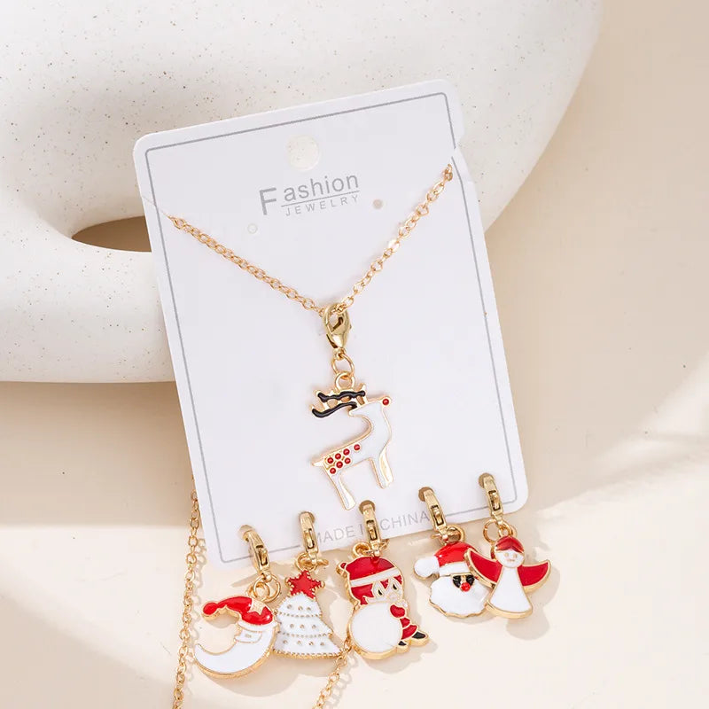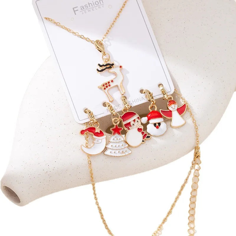 Christmas Theme Angel Santa Deer Combination Necklace Holiday Essential Jewelry Alloy Material Unisex Cartoon Character Pendants - Little Deer and Christmas Friends