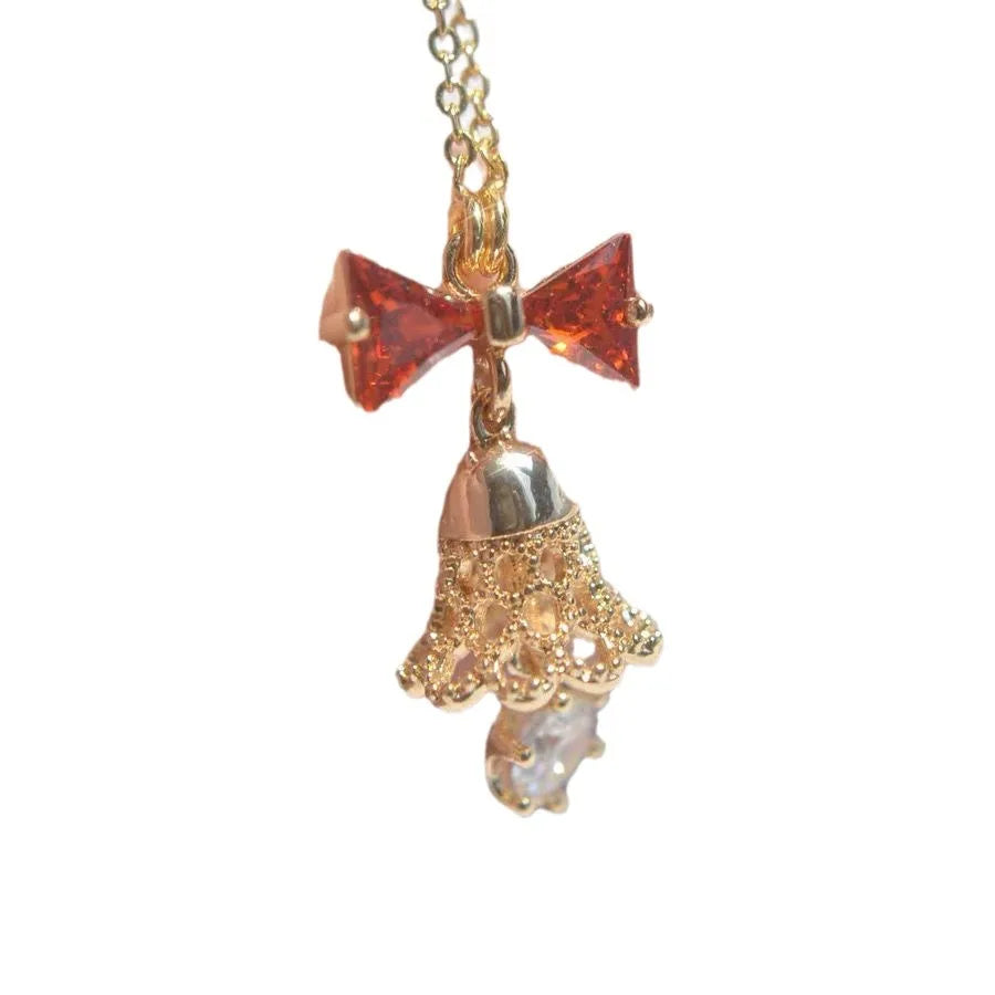 Christmas Theme Cute Red Bowknot Necklace Clavicle Chain Diamond Embedded Ear Cuff No Piercing Required Alloy Material For Women - A Christmas Carol Necklace