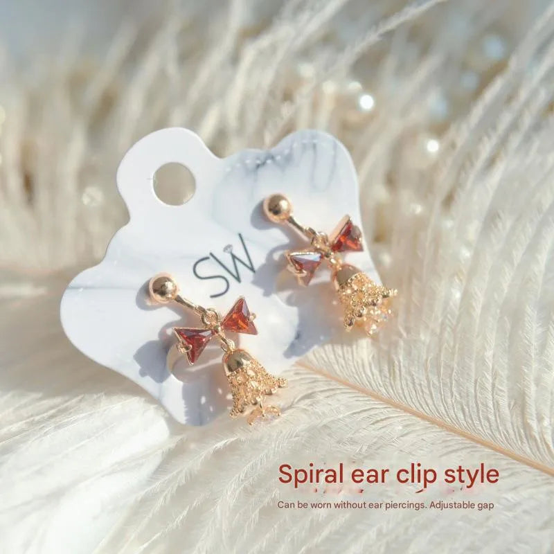 Christmas Theme Cute Red Bowknot Necklace Clavicle Chain Diamond Embedded Ear Cuff No Piercing Required Alloy Material For Women