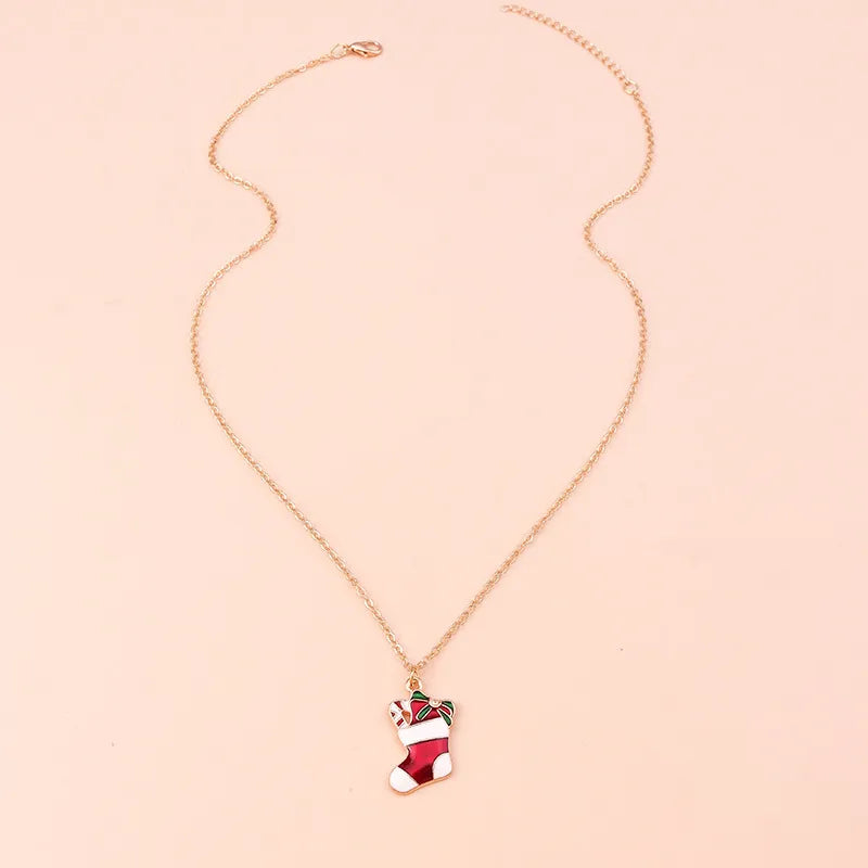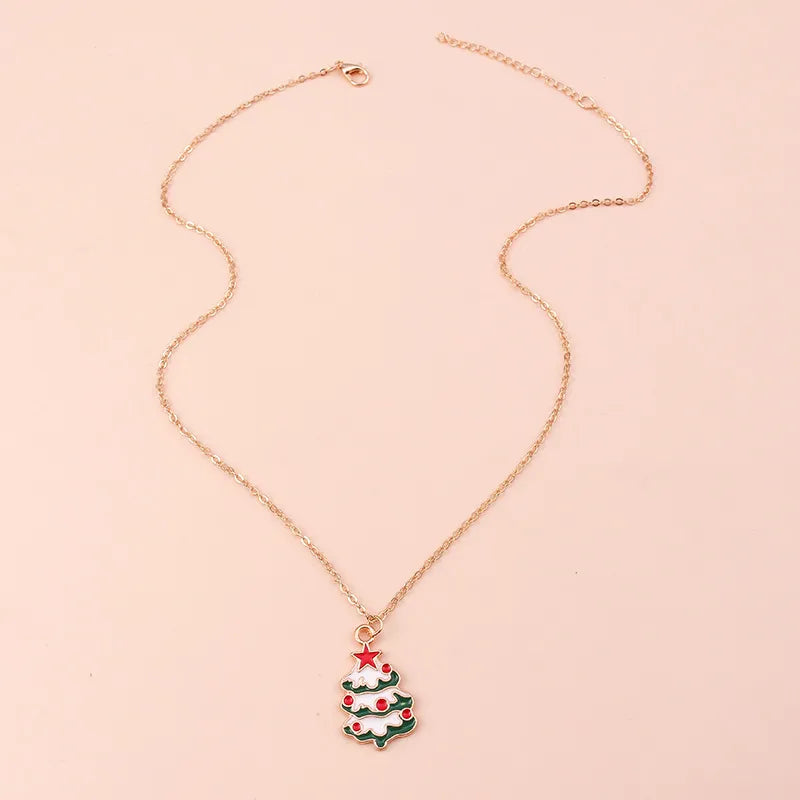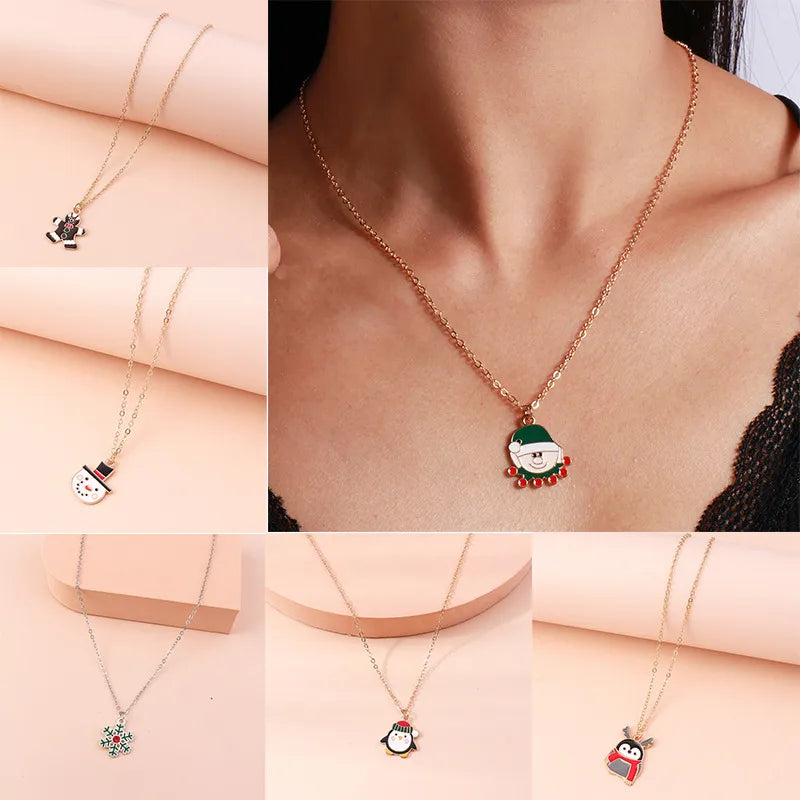 Christmas Themed Necklace Santa Claus Christmas Tree Snowman Design Sweater Chain Cartoon Character Zinc Alloy Jewelry For Women - YN1127 / See details for dimensions