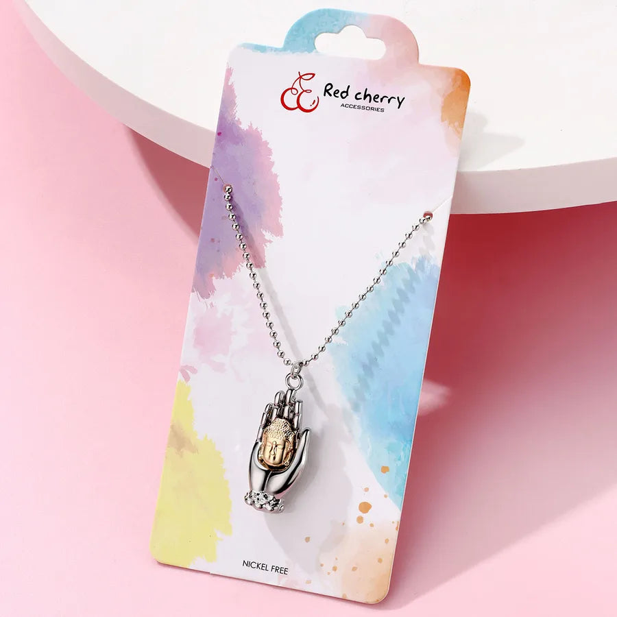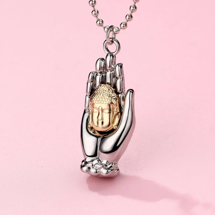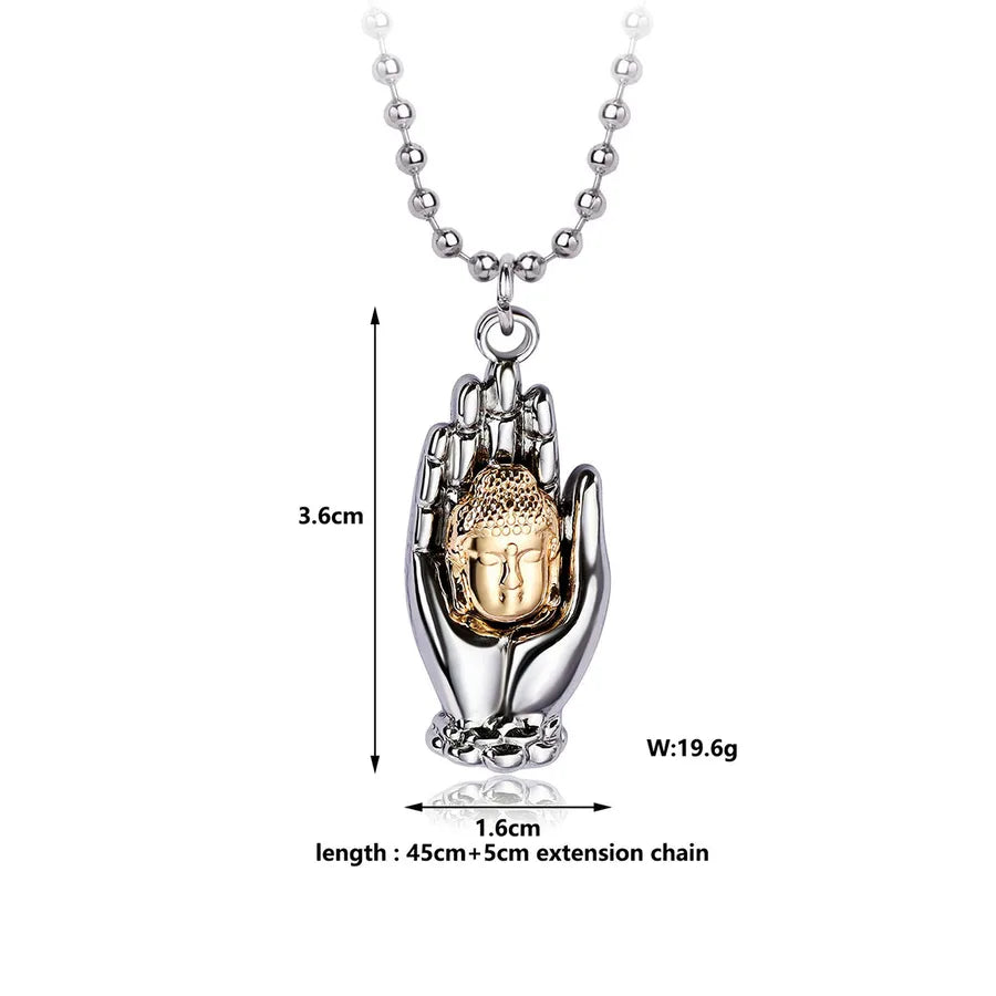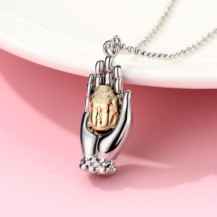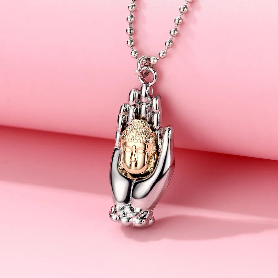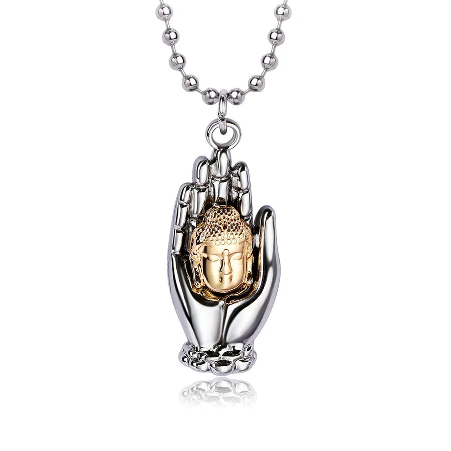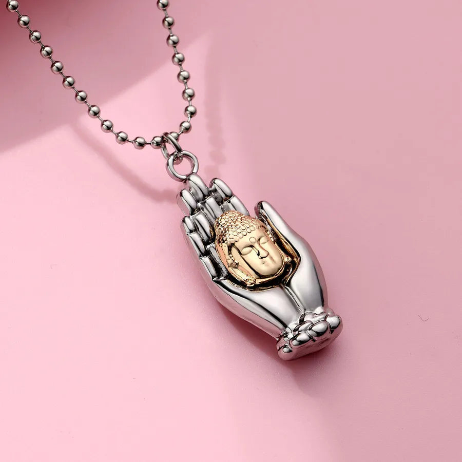 Classical Classic Style Artistic Buddha Statue Palm Alloy ball chain Pendant Necklaces Wholesale - One Size / Silver / Chain Length 45+ 5cm