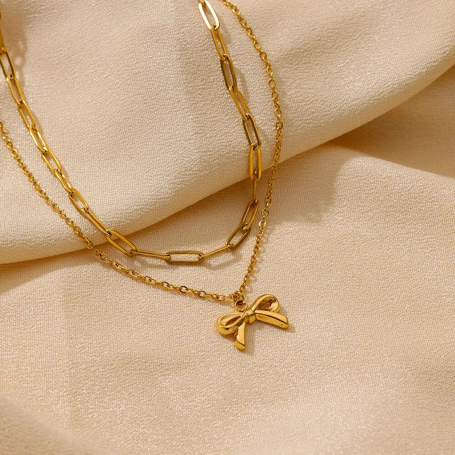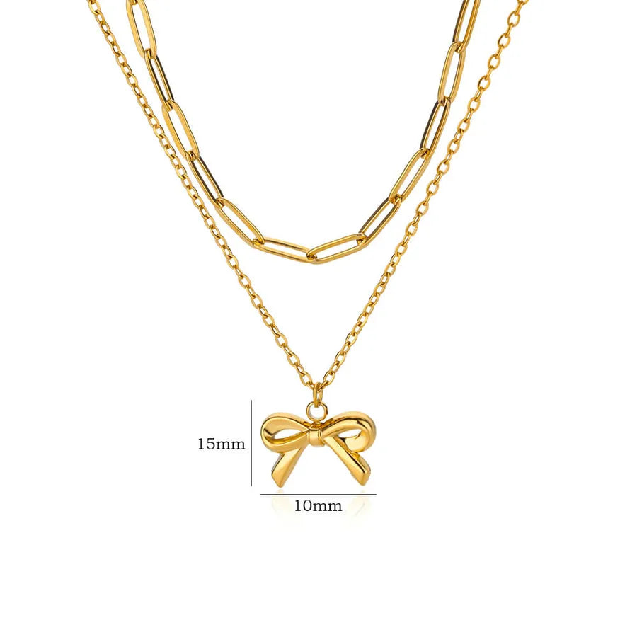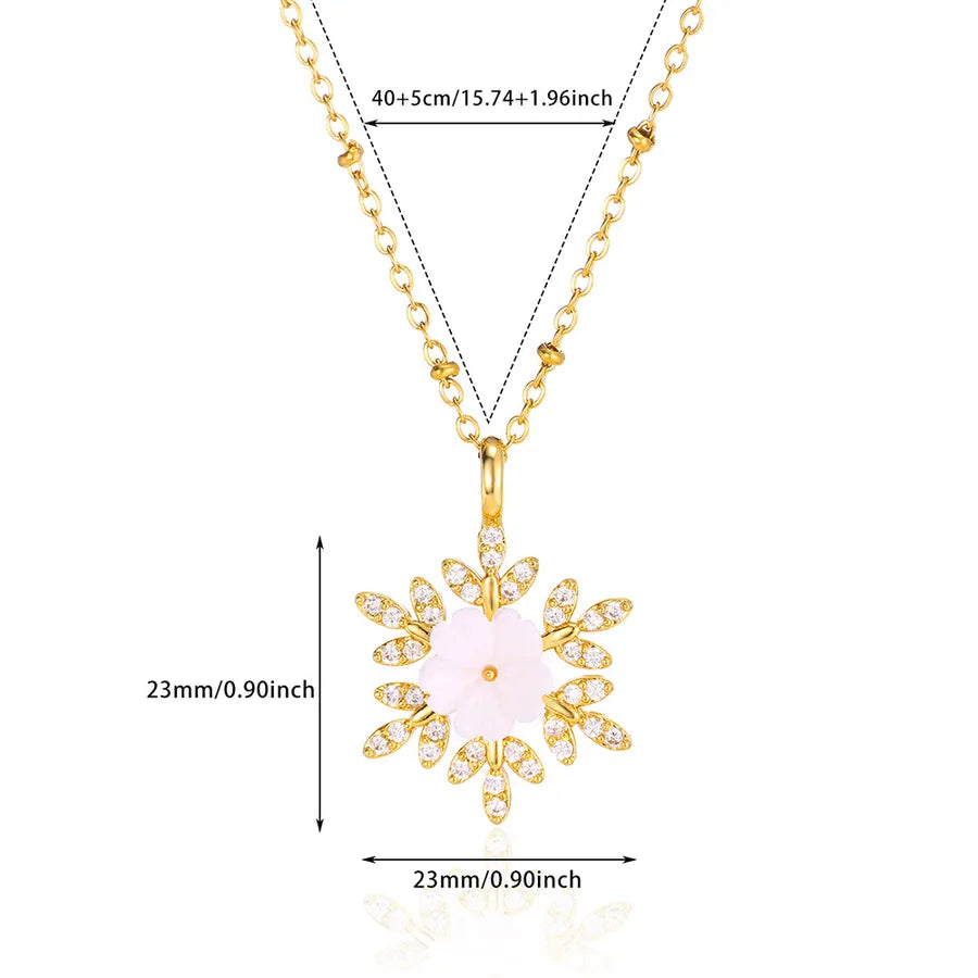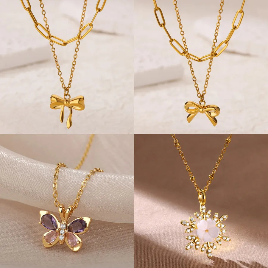 Colorful Butterfly Zircon Necklace Stainless Steel Ice Flower Snowflake Pendant Multi-layer Butterfly Knot Chain Gift For Mom Girl - N06944g