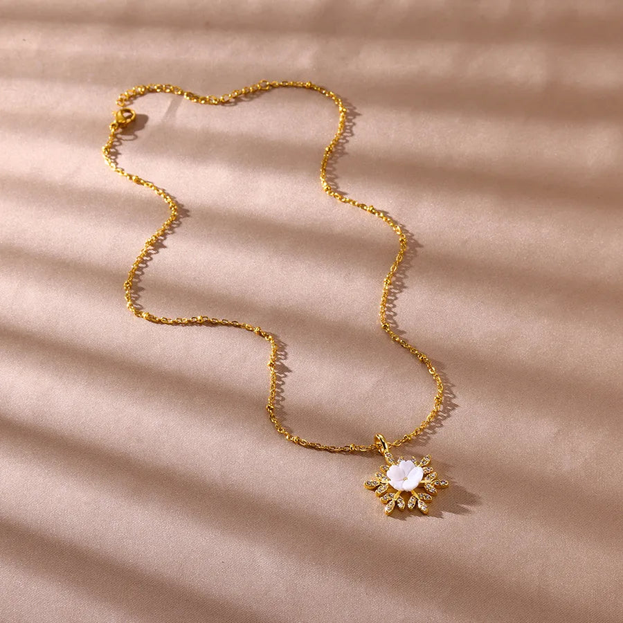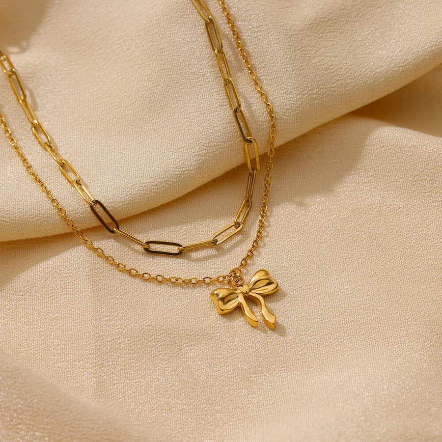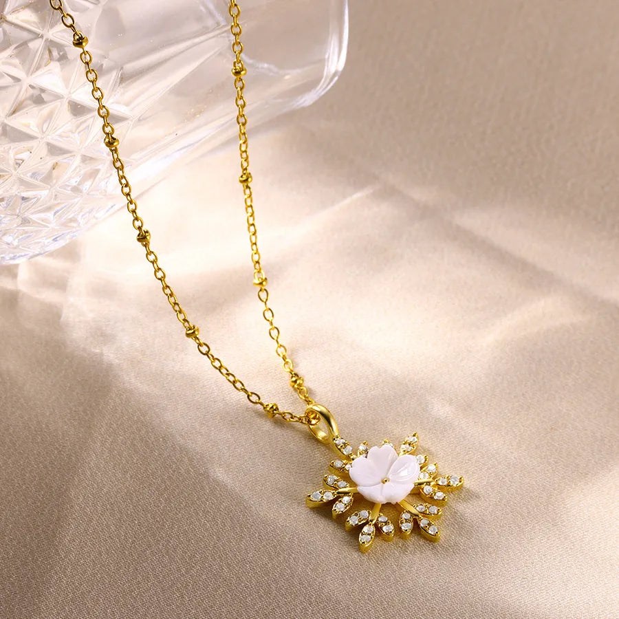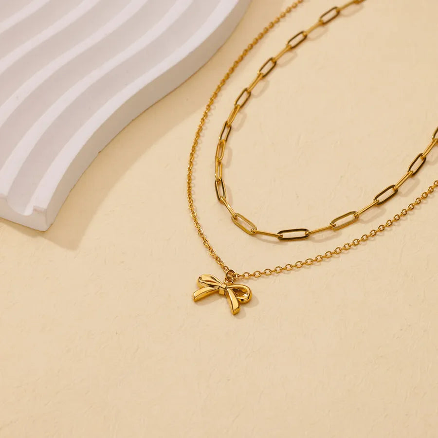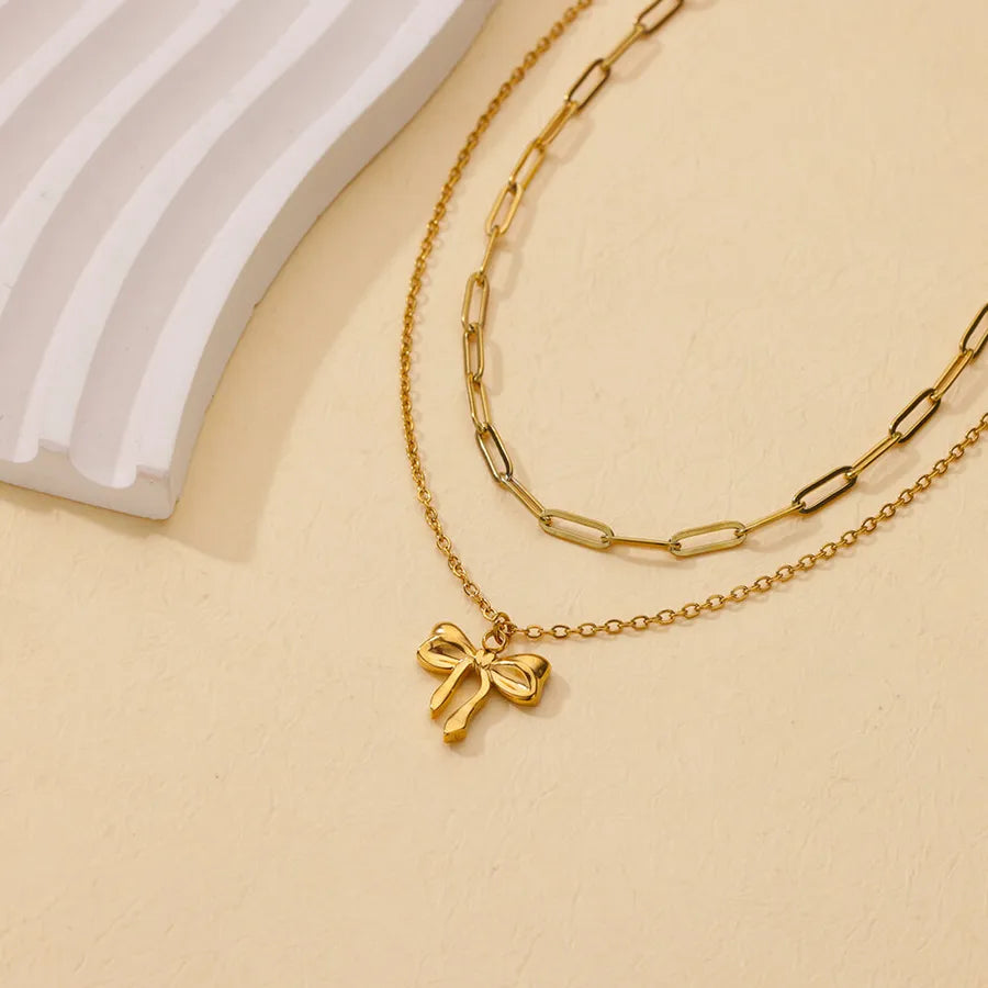 Colorful Butterfly Zircon Necklace Stainless Steel Ice Flower Snowflake Pendant Multi-layer Butterfly Knot Chain Gift For Mom Girl - N06944g