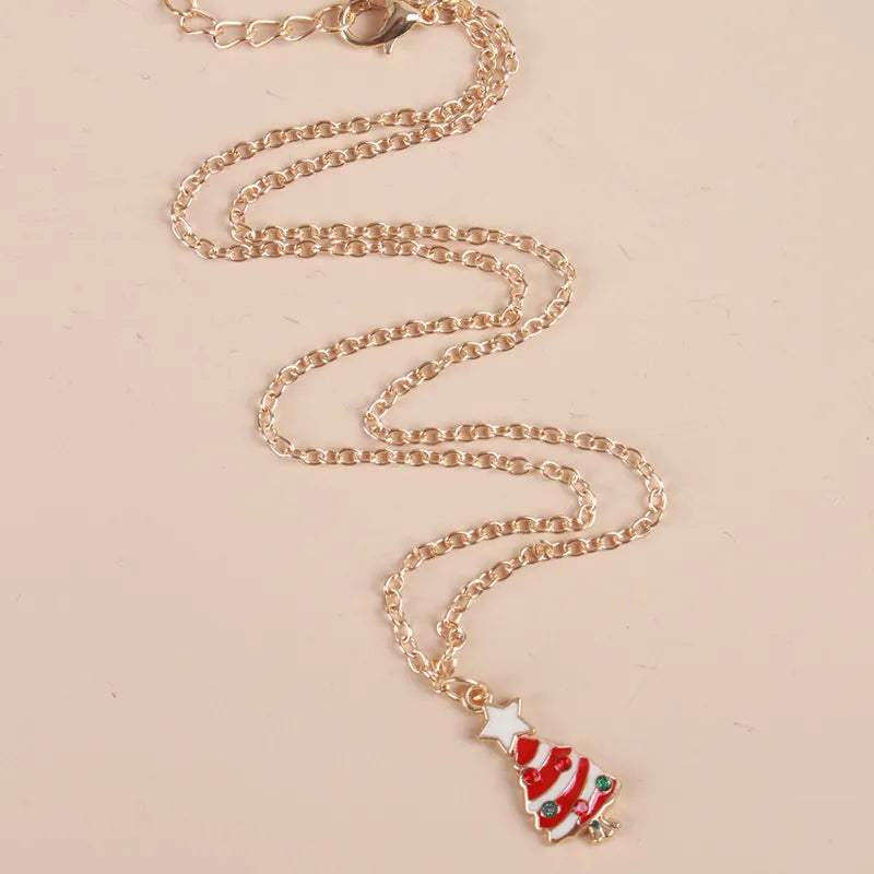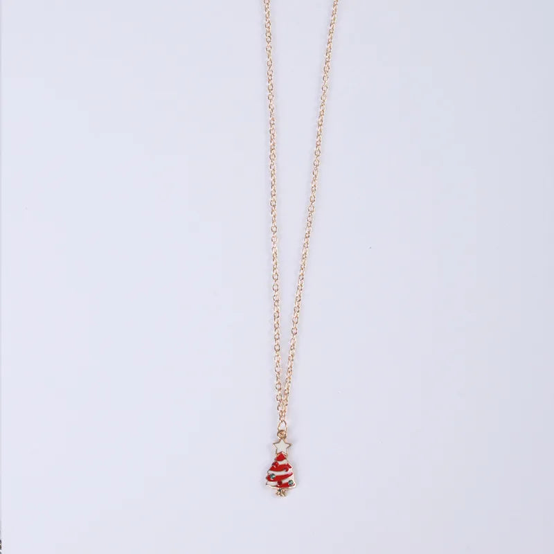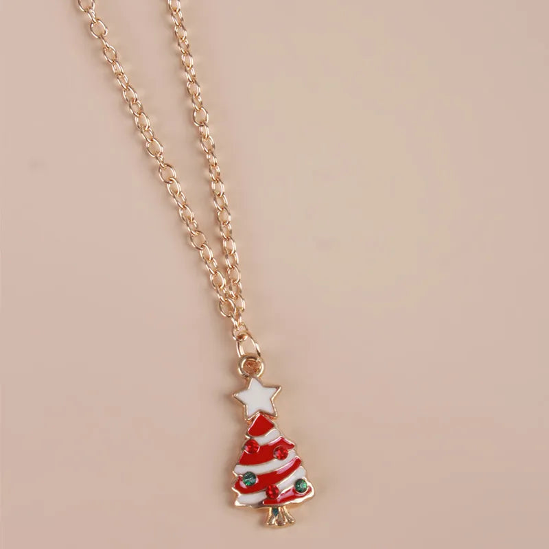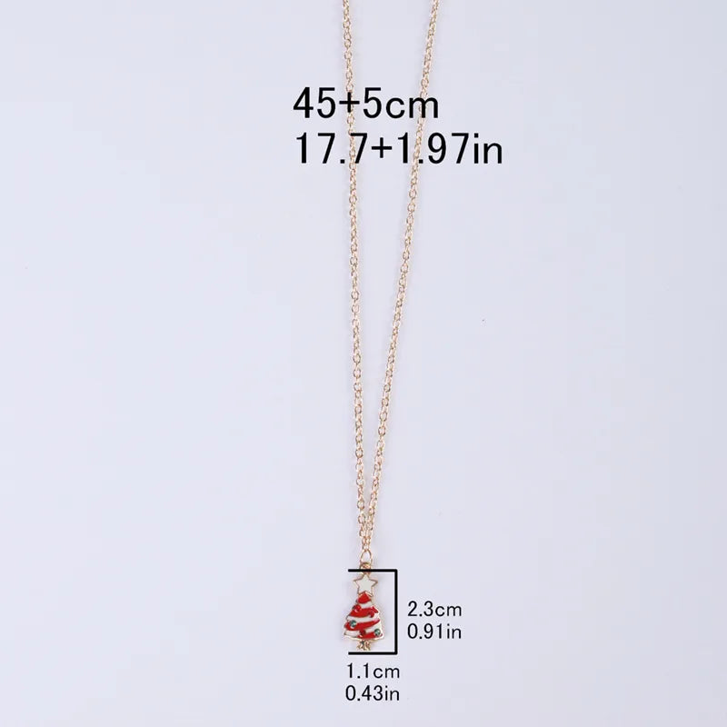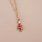 Creative Christmas Series Red Christmas Tree Pendant Necklace Cartoon Covered Snow Alloy Jewelry Festive Themed Accessory - XL3418