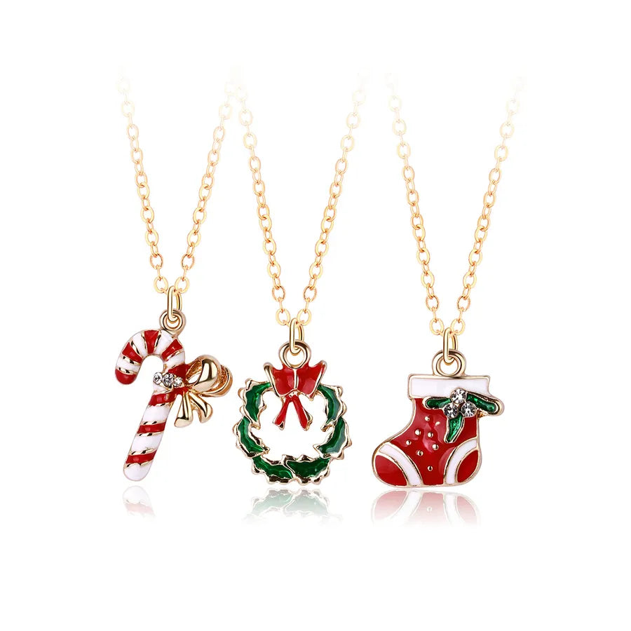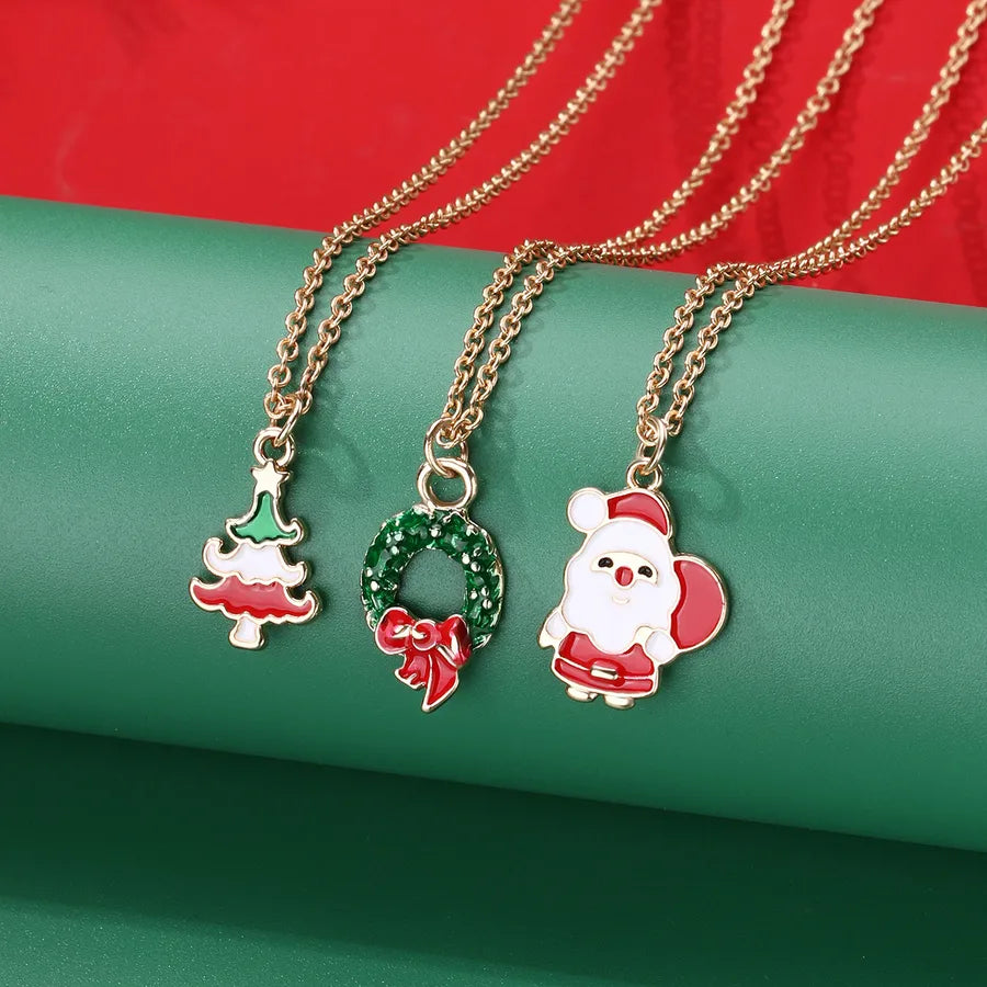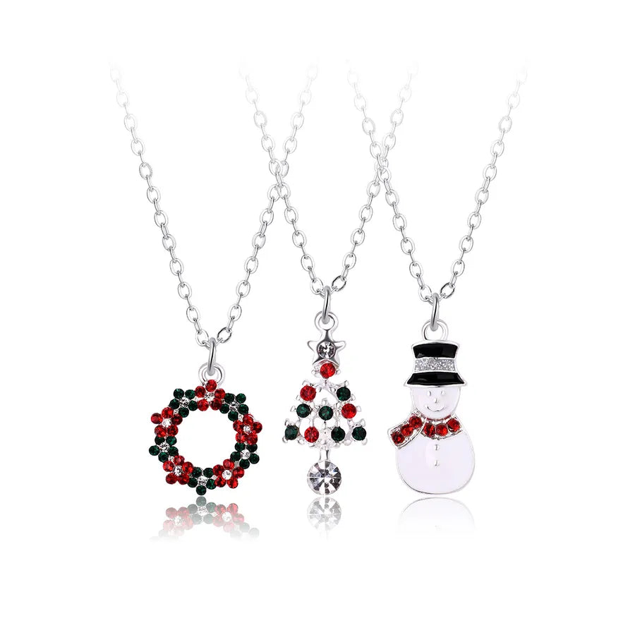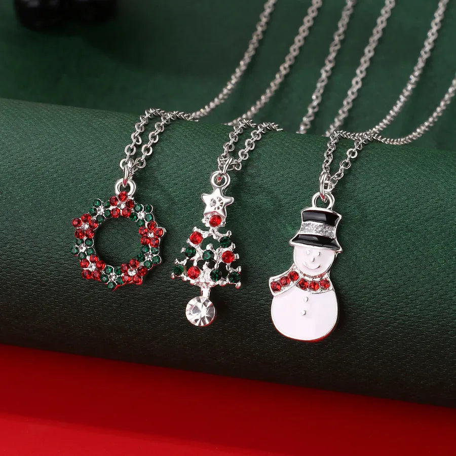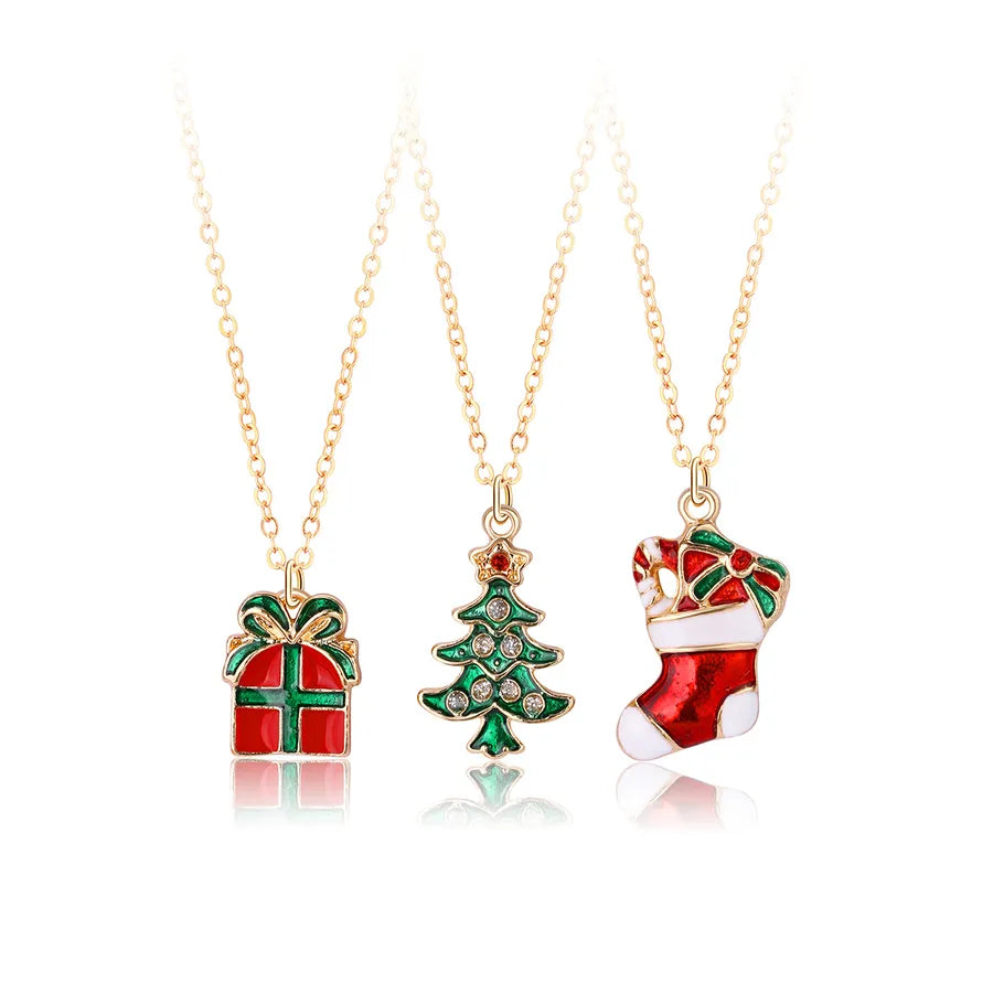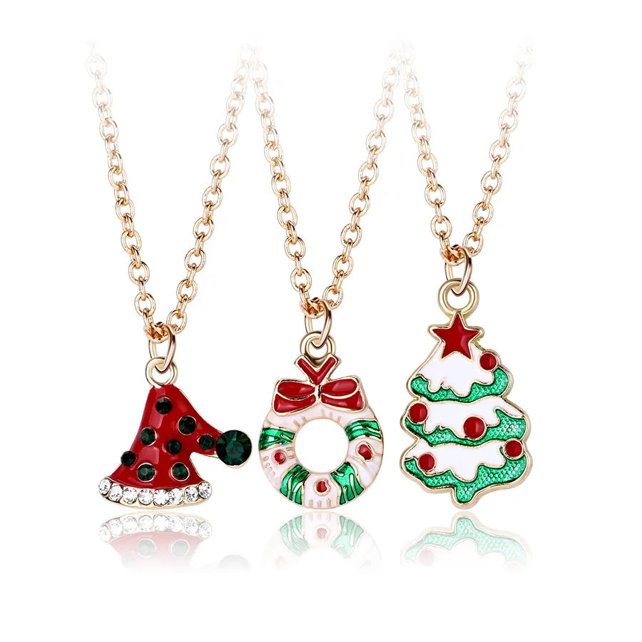Creative Christmas Tree Gift Set With Colorful Drip Oil Party Necklaces Christmas Themed Alloy Jewelry For Women - Christmas Wreath Tree Snowman Three Chains
