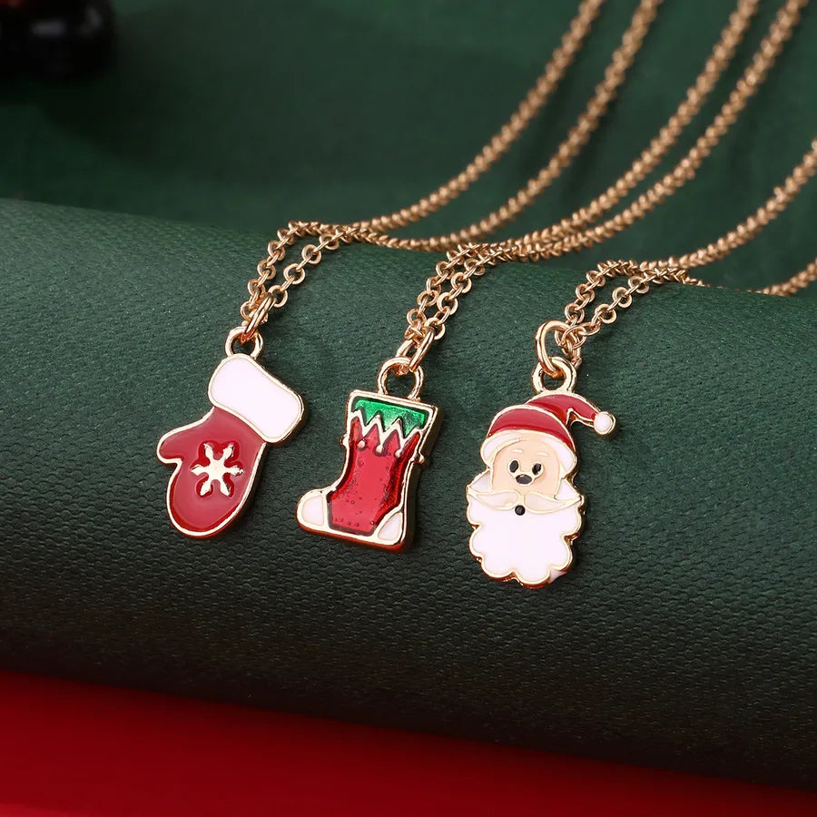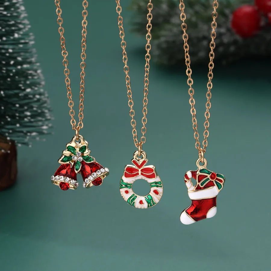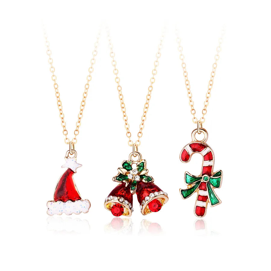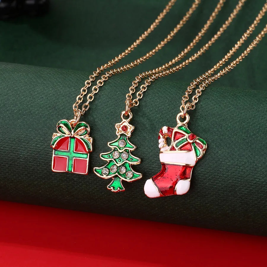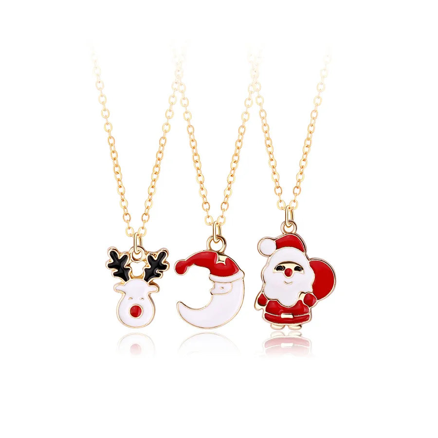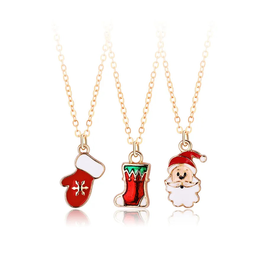 Creative Christmas Tree Gift Set With Colorful Drip Oil Party Necklaces Christmas Themed Alloy Jewelry For Women - Christmas Wreath Tree Snowman Three Chains