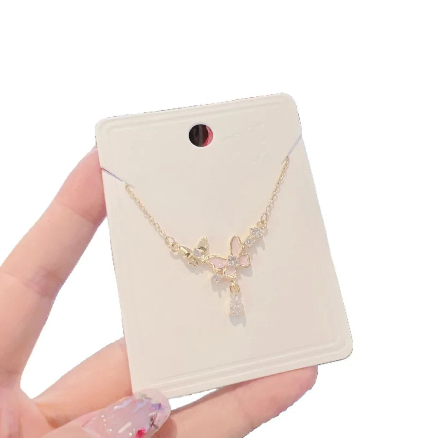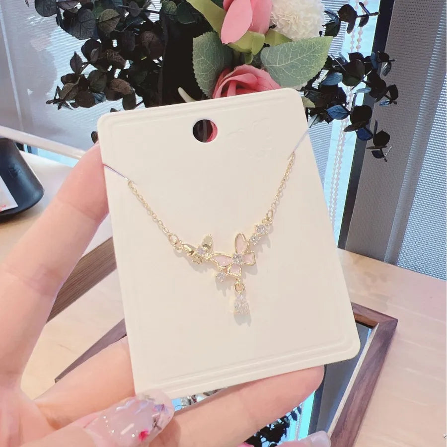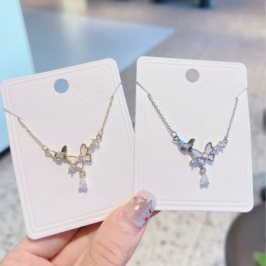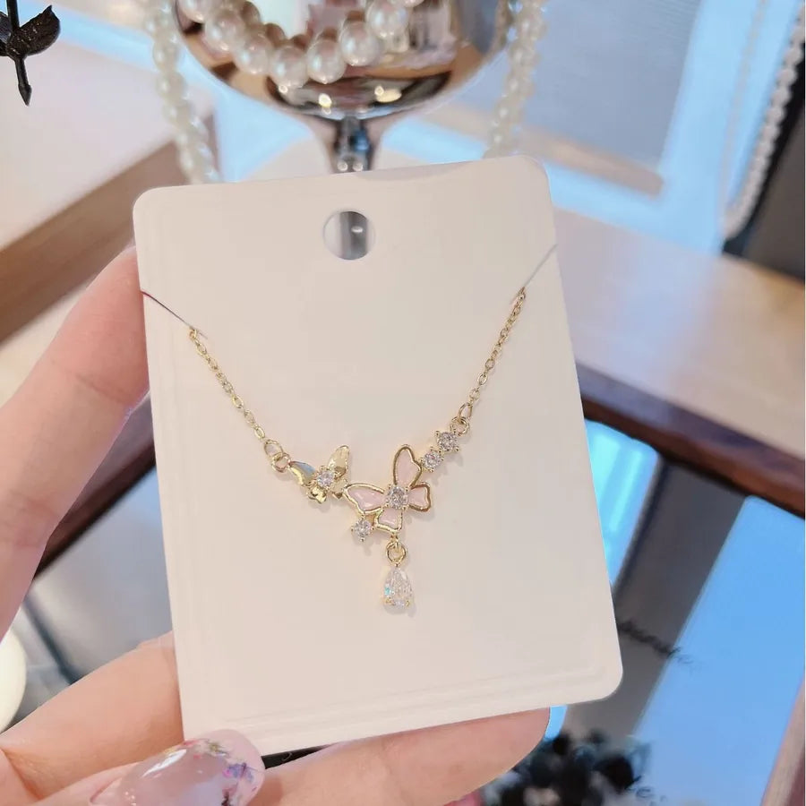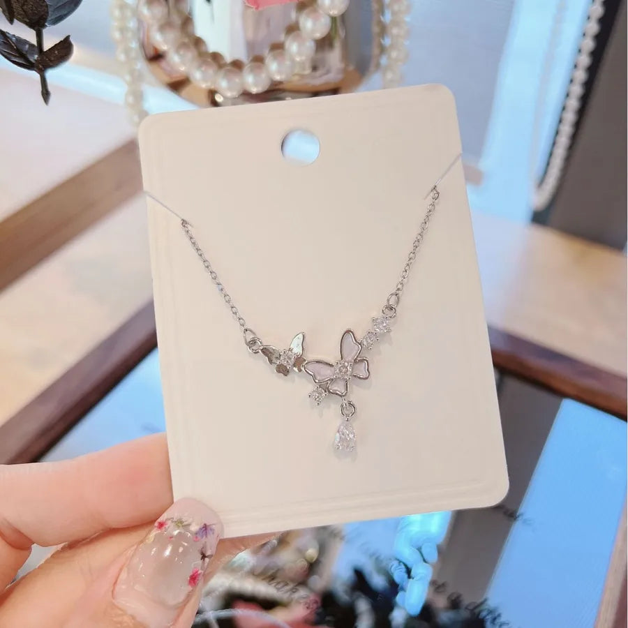 Elegant Butterfly Zircon Micro-Paved Necklace Fashionable Versatile Minimalist Iron Alloy Copper Alloy Geometric Pattern Women's Necklace