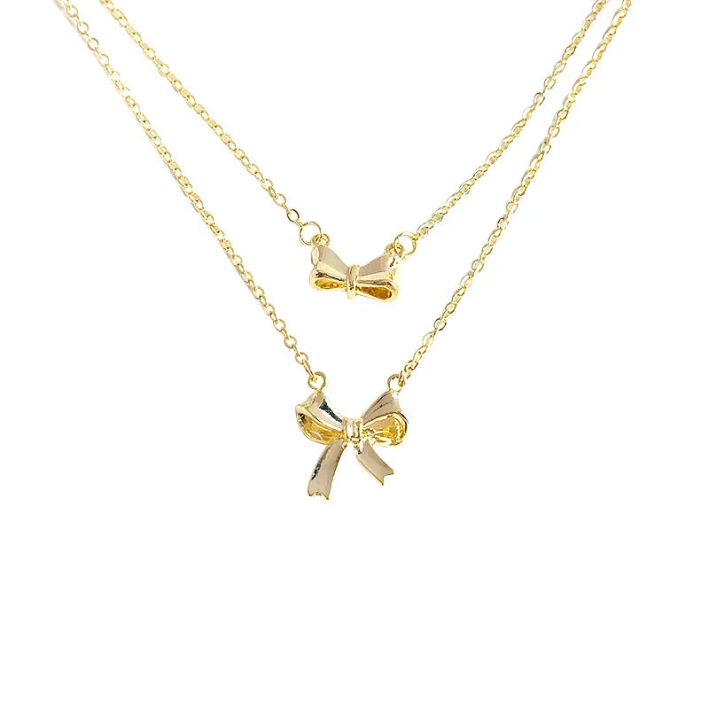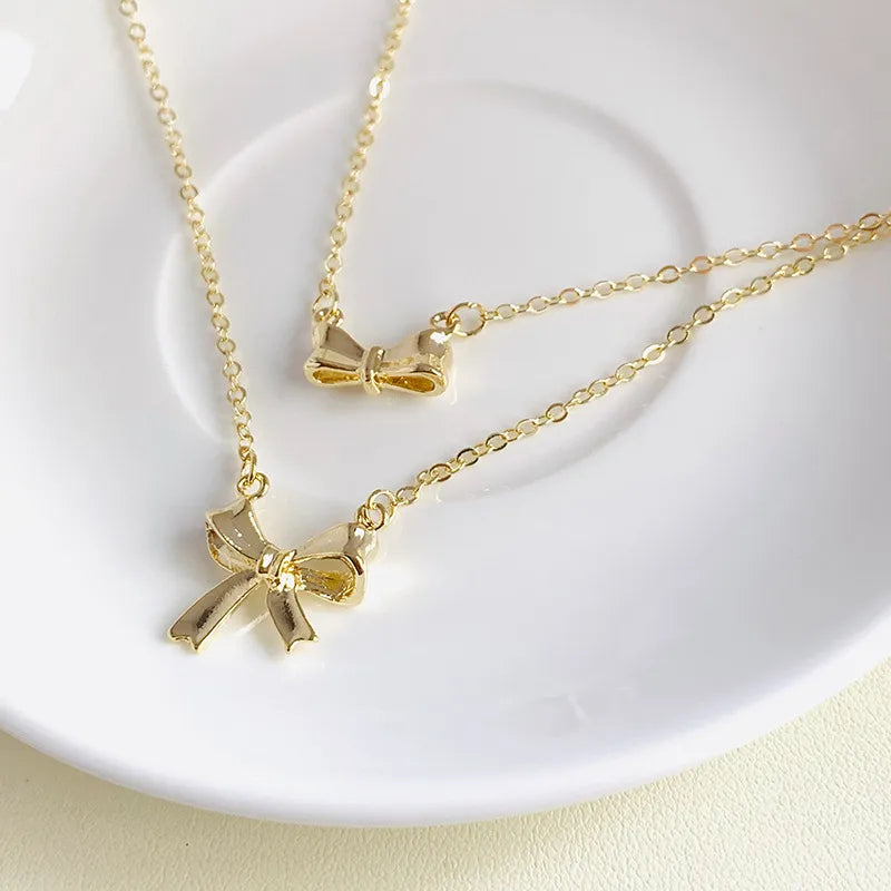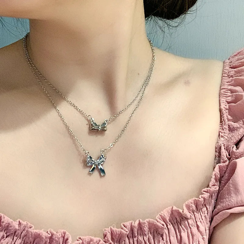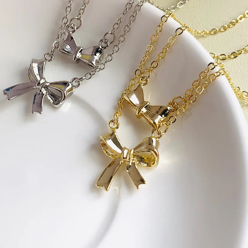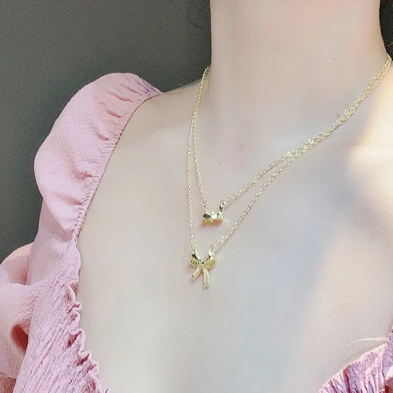 Elegant Double Layer Butterfly Knot Necklace Women's Fashion Lockbone Chain Gold Plated Pendant Luxury Sensation Jewelry - 33781