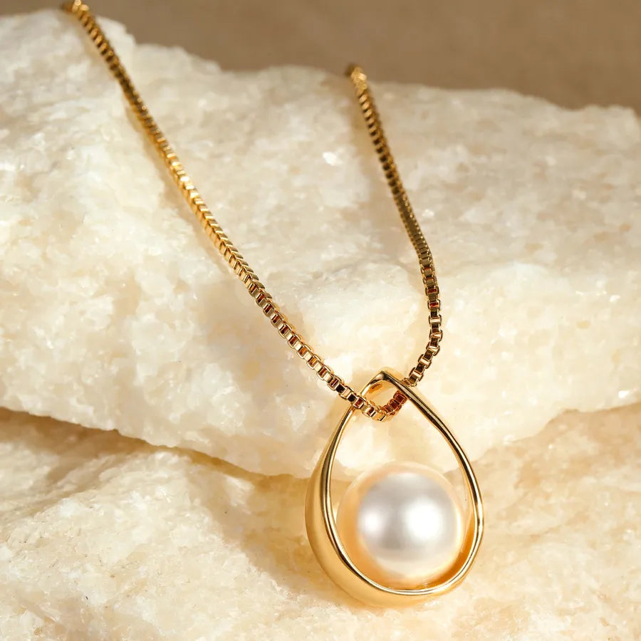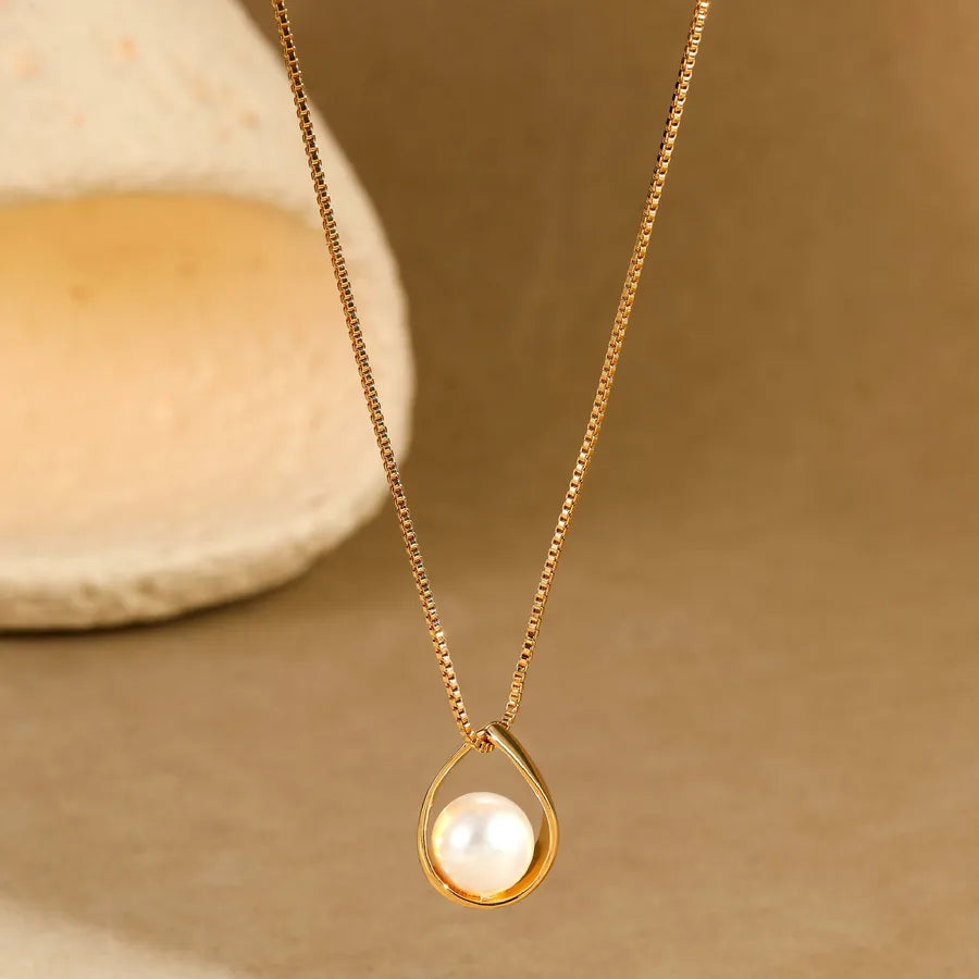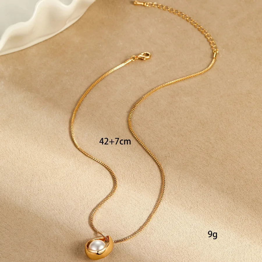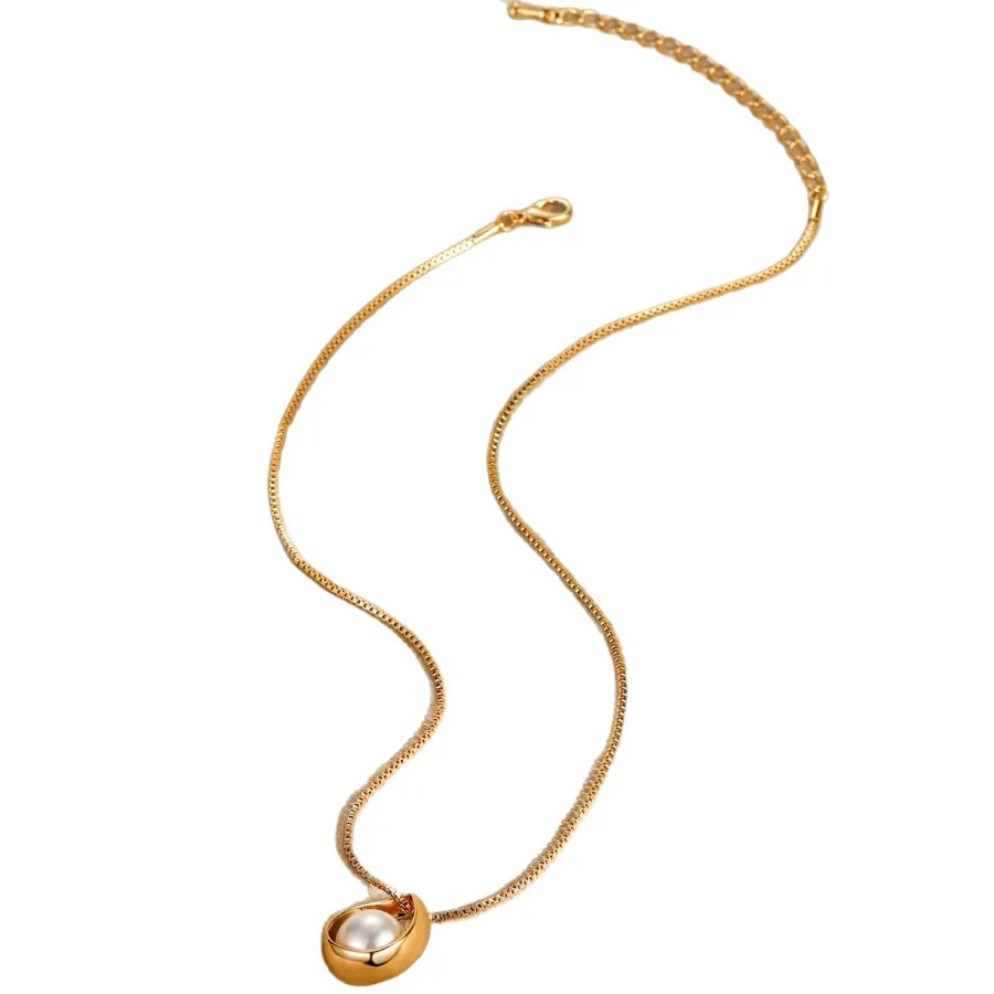 Elegant Geometric Pearl Pendant Collarbone Chain Alloy Necklace Luxury Minimalist Style Jewelry Accessory - Gold