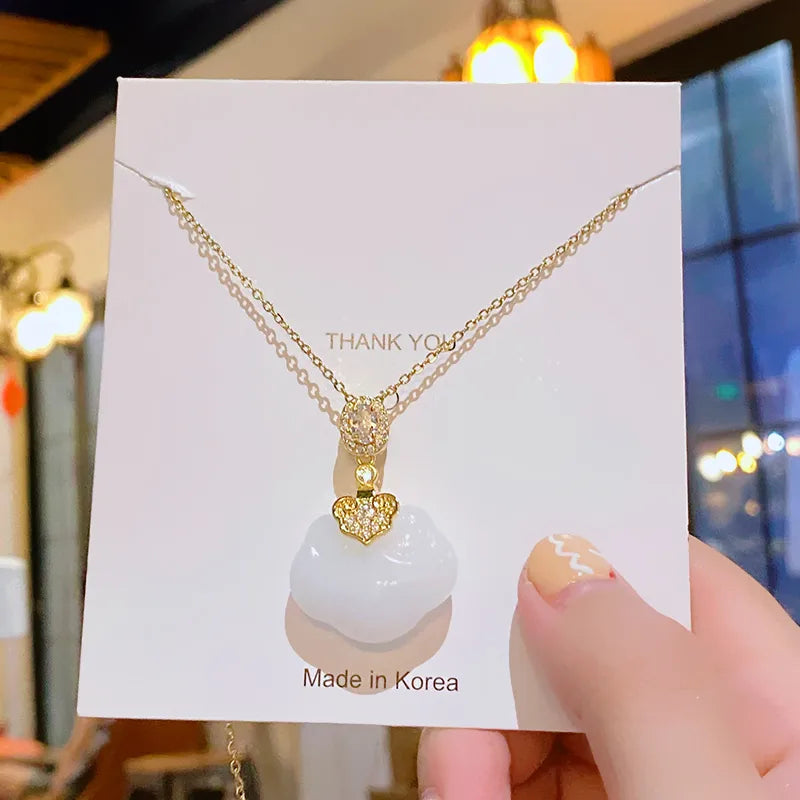 Elegant Glam Luxurious Clouds 18K Gold Plated K Gold Plated Glass Zircon 304 Stainless Steel Copper Wholesale Pendant Necklace - White