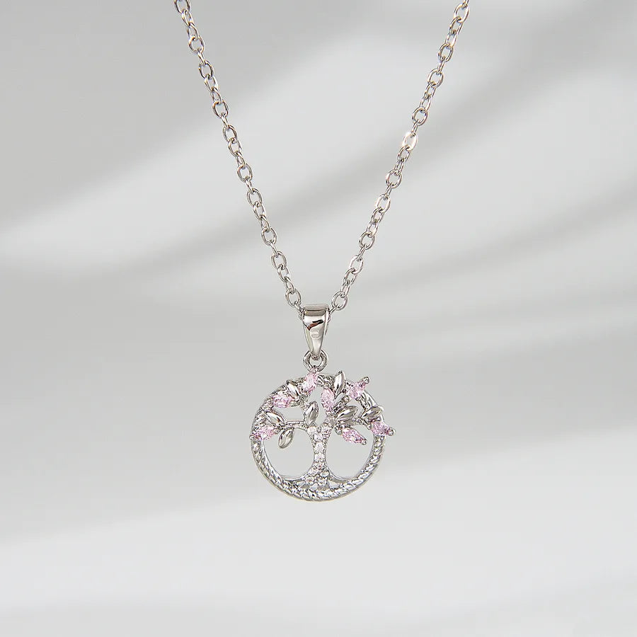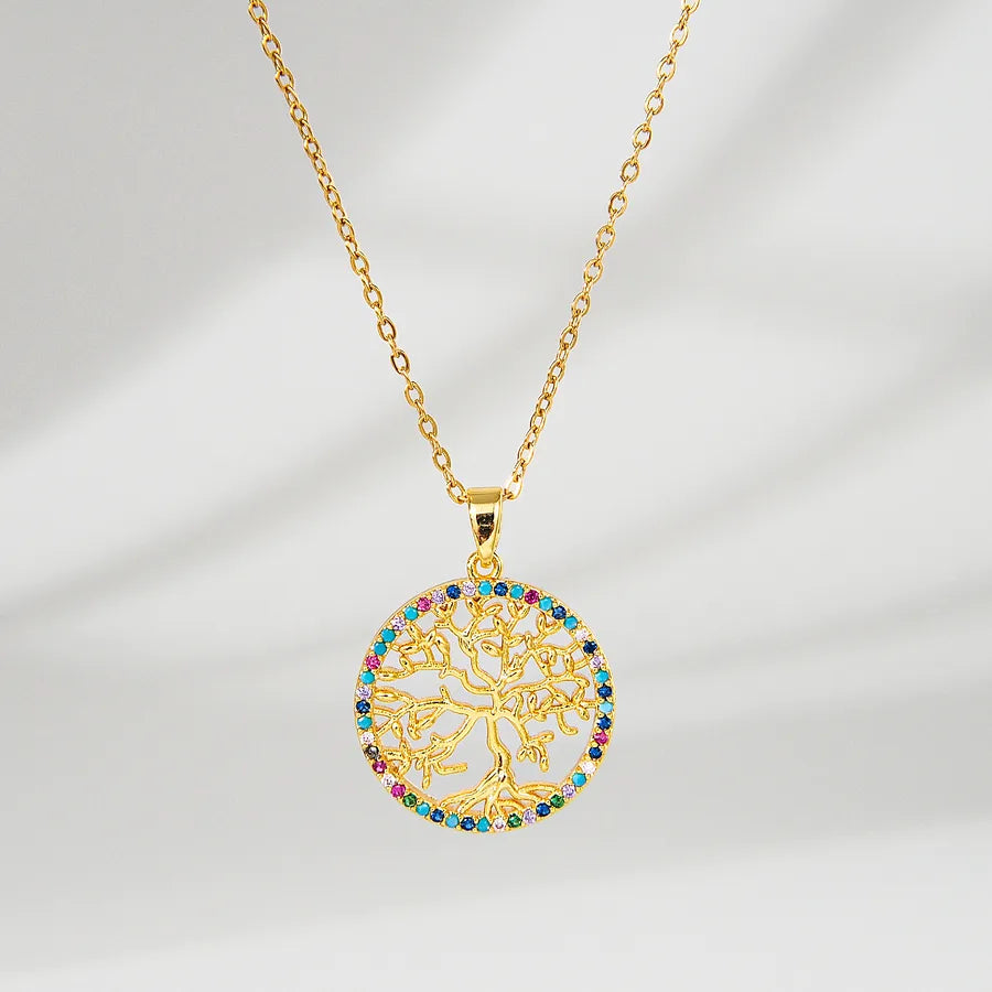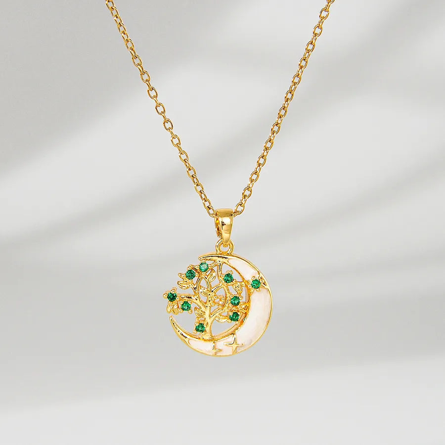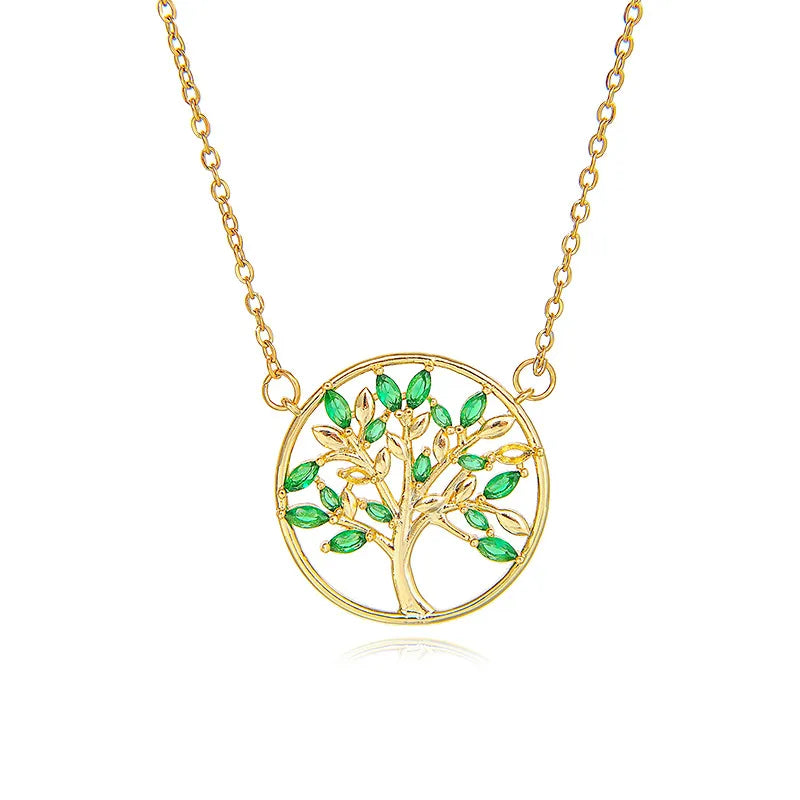 Elegant Hollow Out Tree Of Life Pendant Necklace Titanium Steel Zircon Plated Non Fading Copper Alloy Personalized Jewelry For Women - Titanium Steel Cross Chain + 18K Gold: Multi Green Horse Eye Zircon Life Tree Necklace
