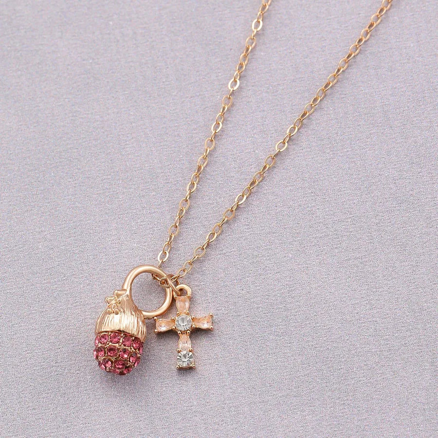 Elegant Retro Pinecone Pendant Necklace Women's Fine Jewelry Clavicle Chain Early Spring Accessory Alloy Cross Pattern - 01 Kc Gold 2130