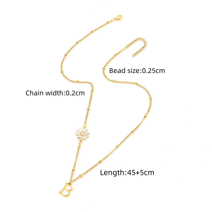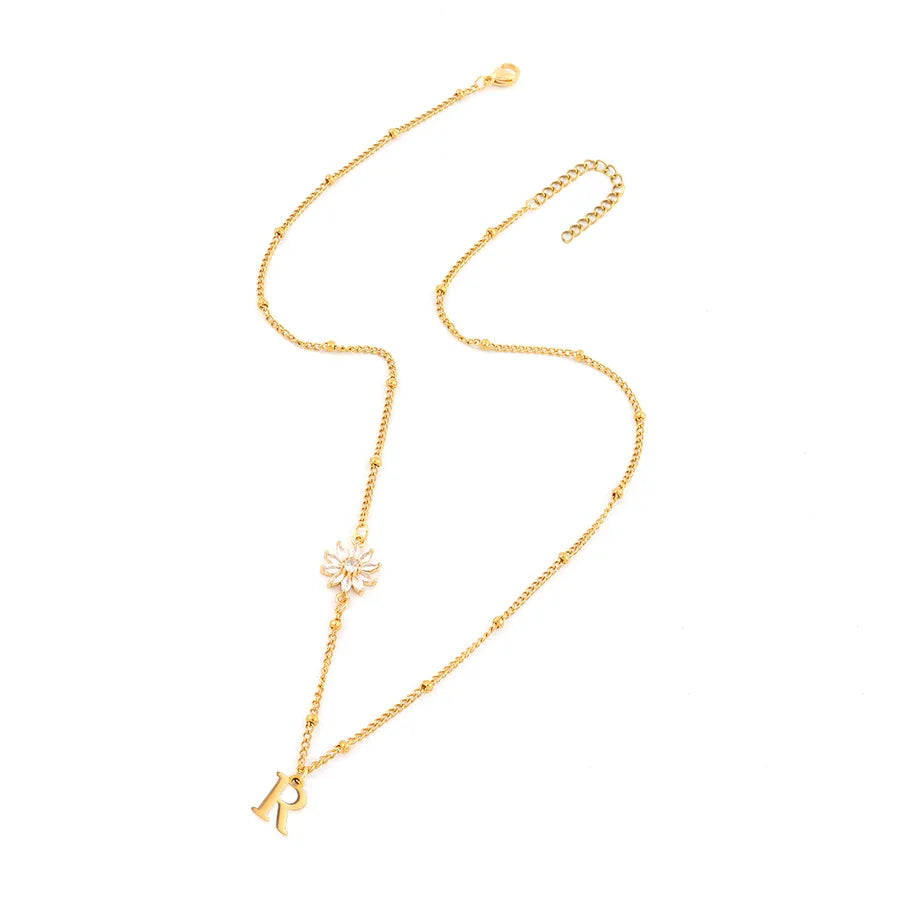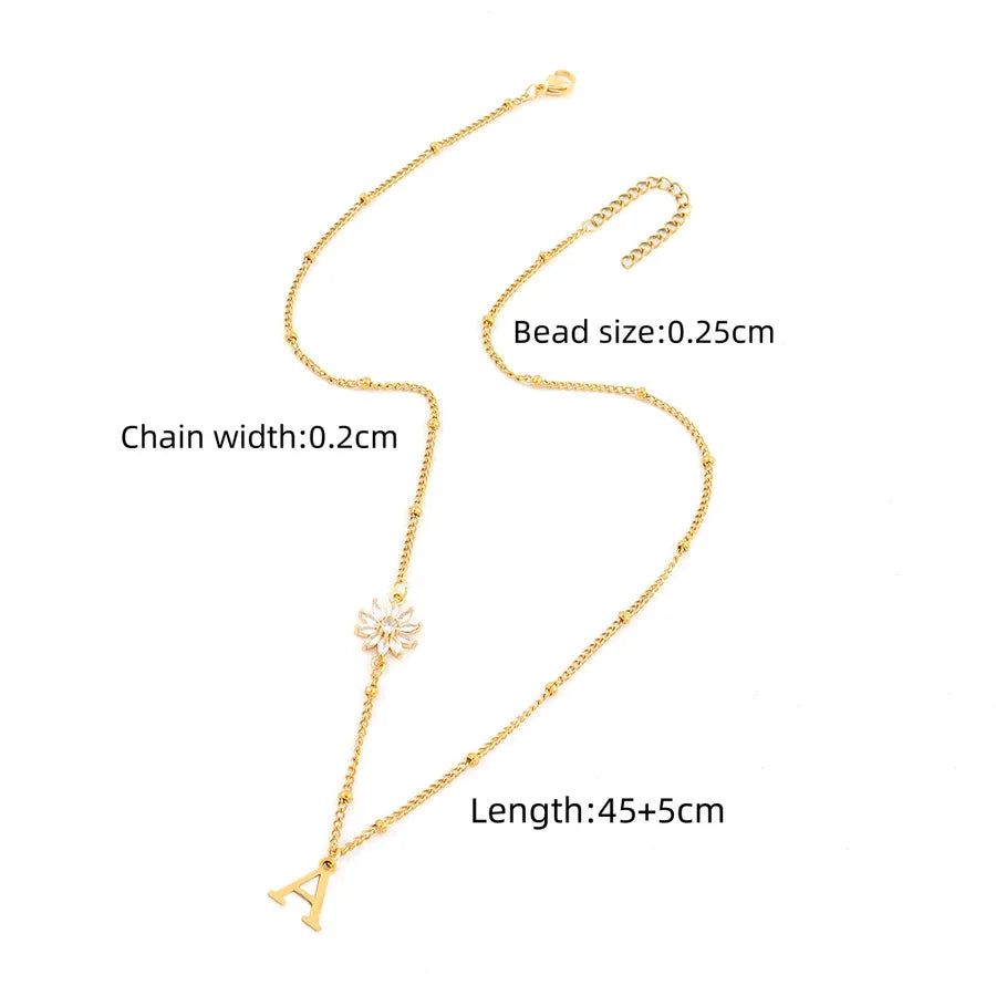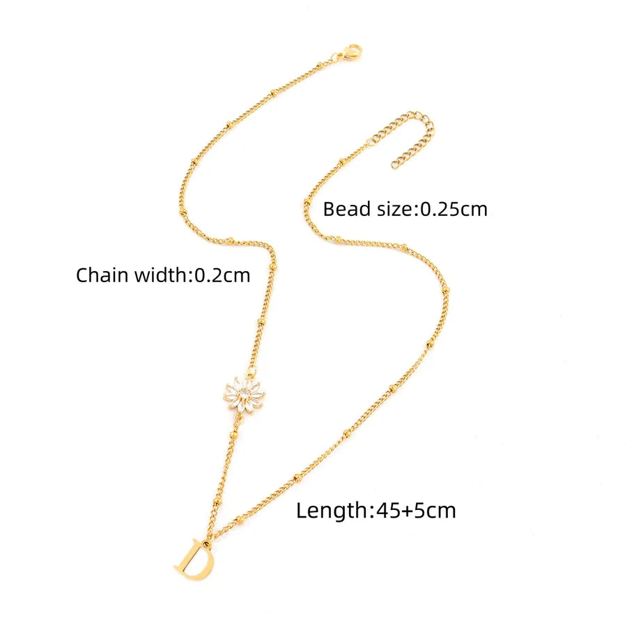 Elegant Simple Style Classic Style Letter Flower 201 Stainless Steel 304 Stainless Steel Artificial Crystal Clip Bead Necklace Lobster Trigger Clasp Closure Pendant Necklaces Wholesale - Gold / A