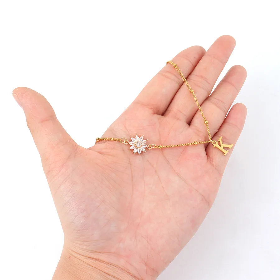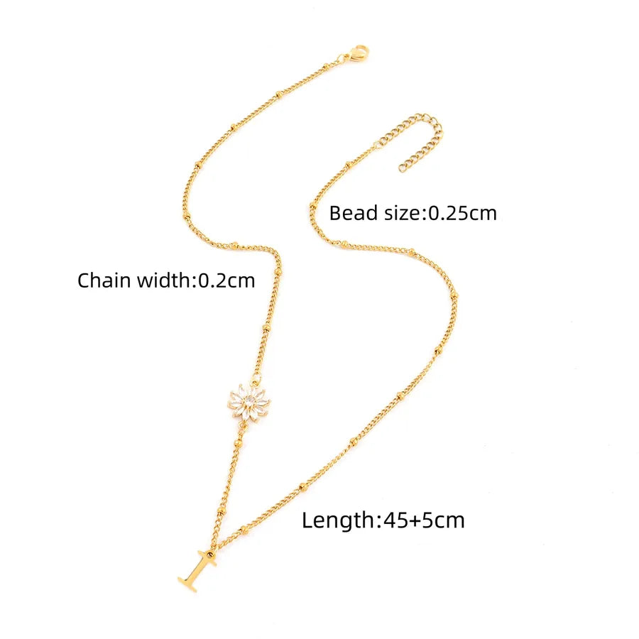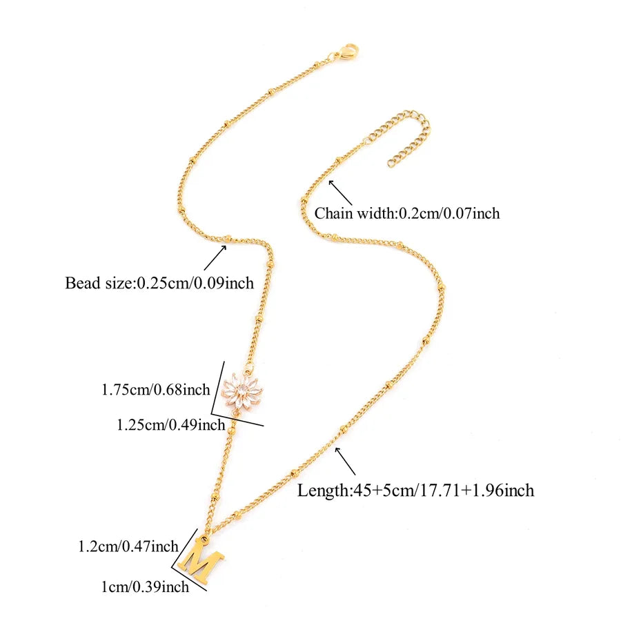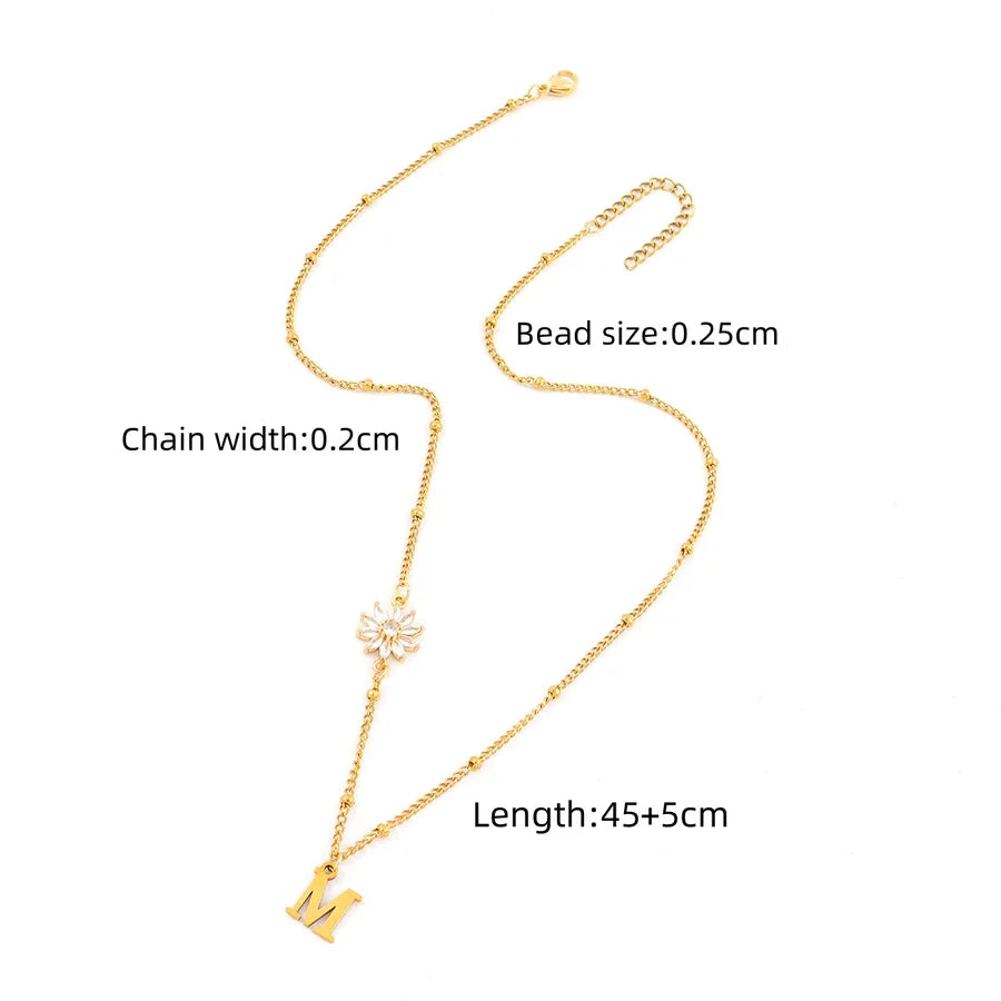 Elegant Simple Style Classic Style Letter Flower 201 Stainless Steel 304 Stainless Steel Artificial Crystal Clip Bead Necklace Lobster Trigger Clasp Closure Pendant Necklaces Wholesale - Gold / A