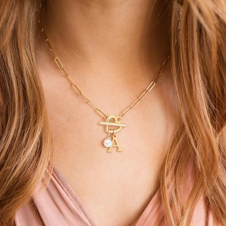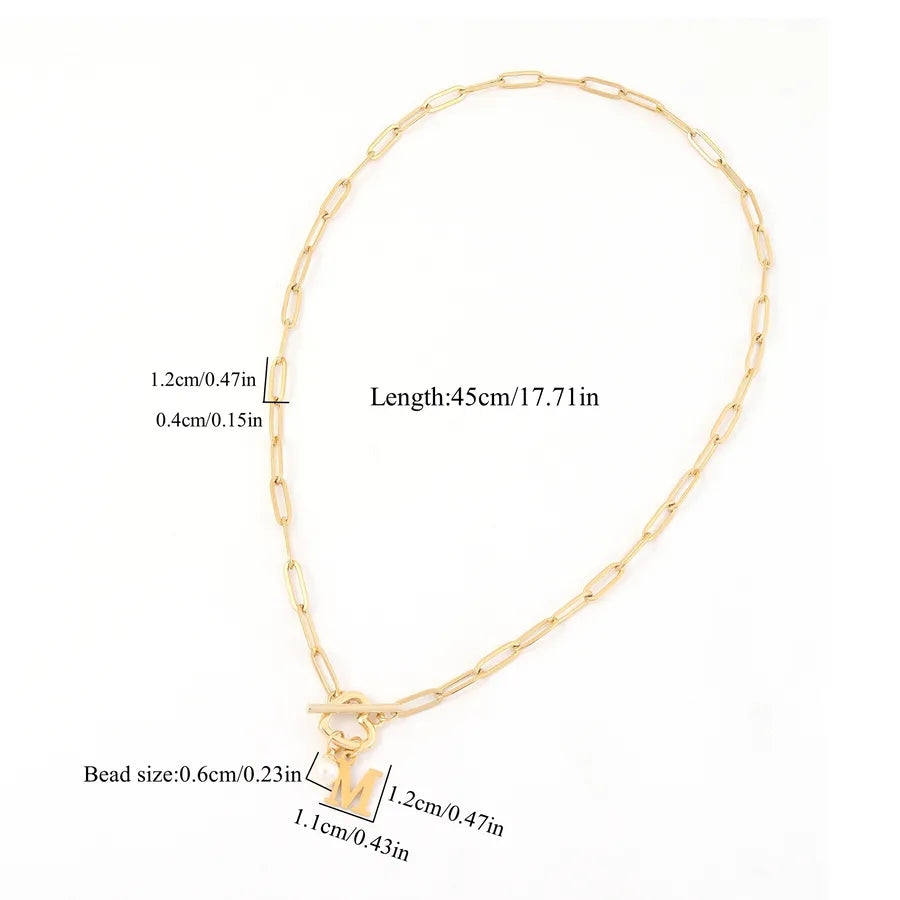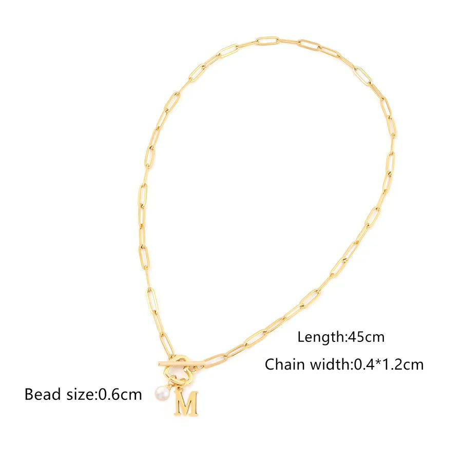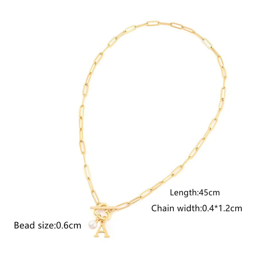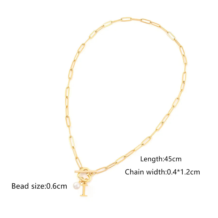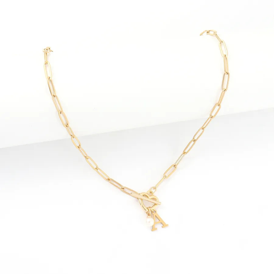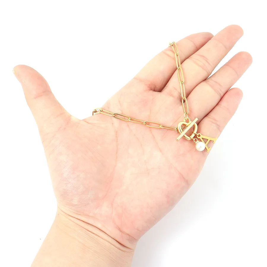 Elegant Simple Style Classic Style Letter Heart Shape 201 Stainless Steel 304 Stainless Steel Artificial Pearl Paperclip Chain OT Clasp Toggle Clasp Closure Pendant Necklaces Wholesale - Gold / A