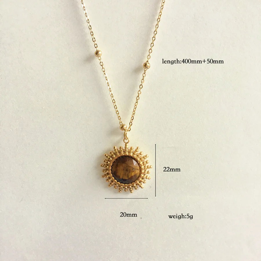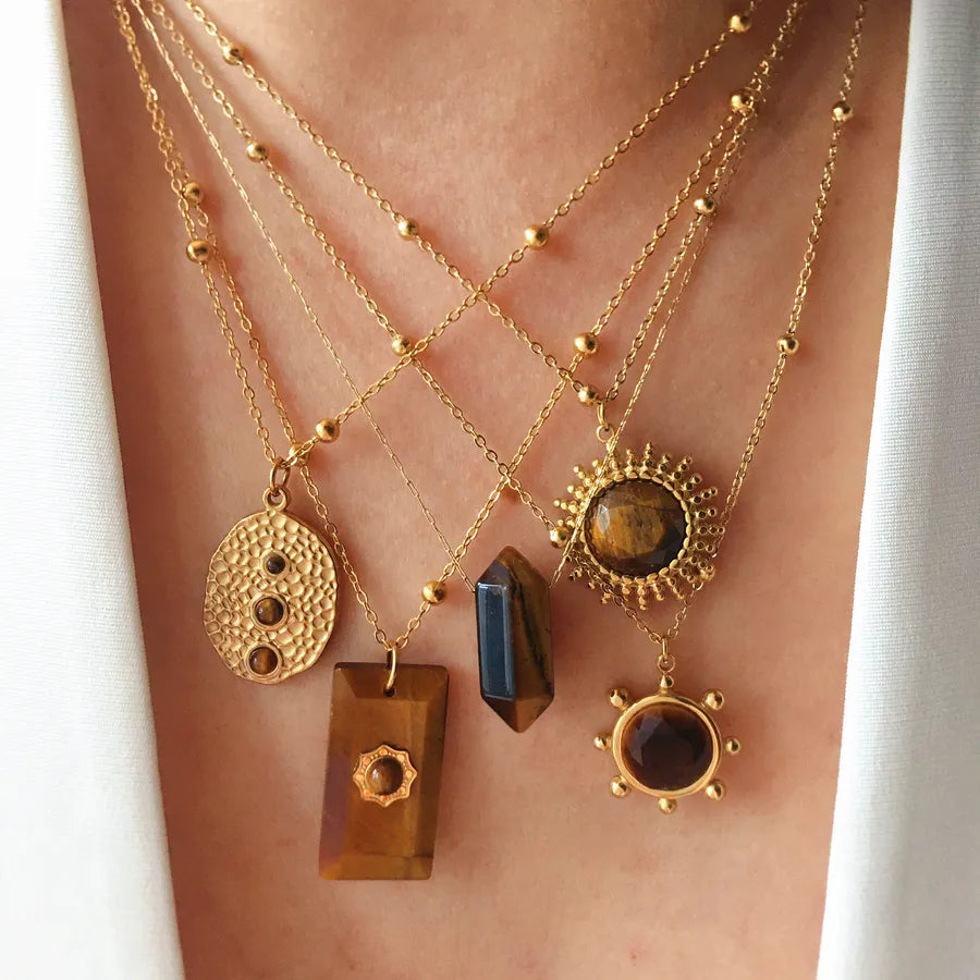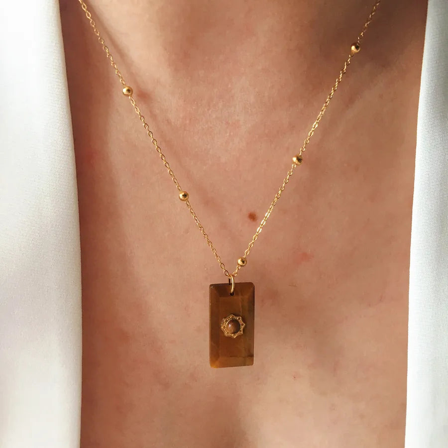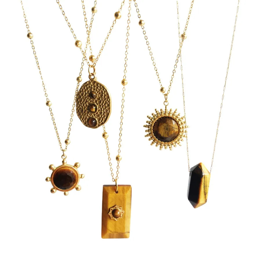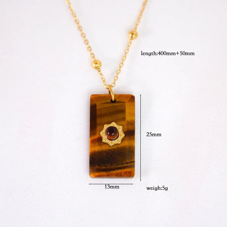 Elegant Yellow Tiger Stone Pendant Necklace Titanium Steel Natural Stone Jewelry Set Geometric Pattern Oval Design For Women - Square plate-Yellow tiger-stone