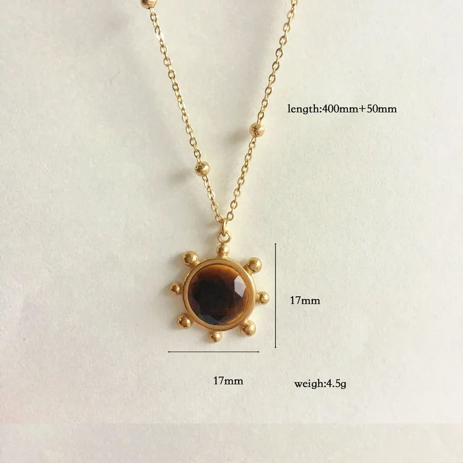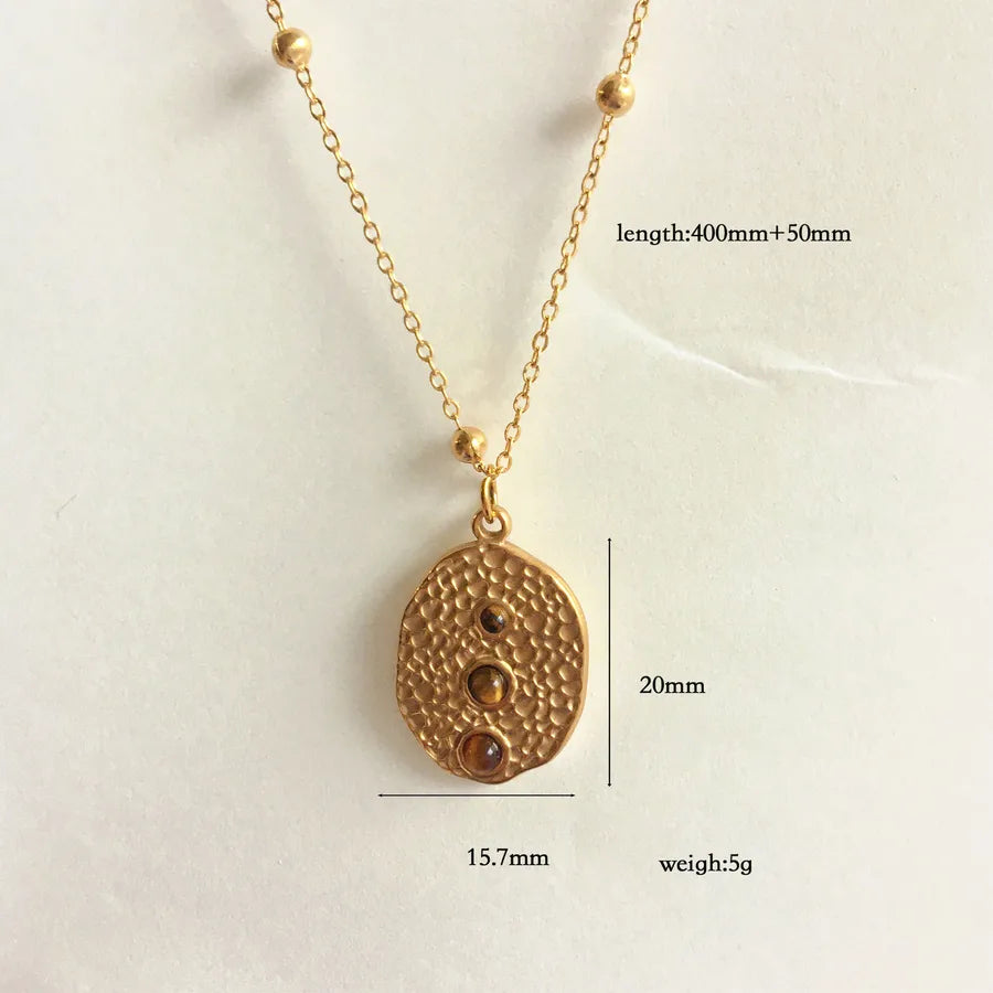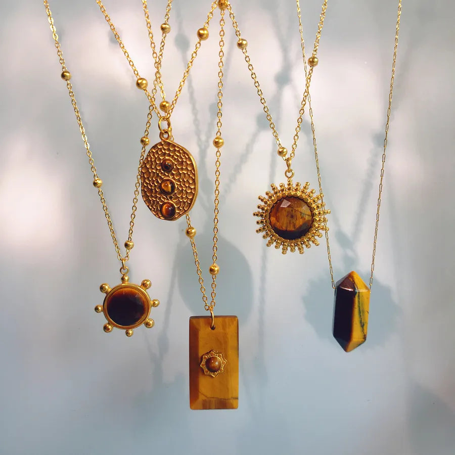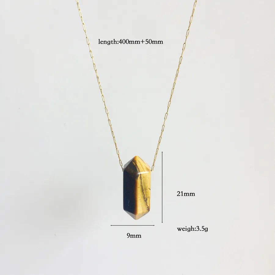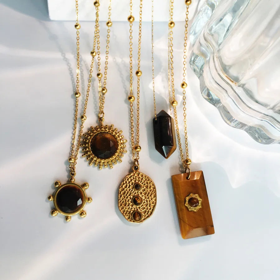 Elegant Yellow Tiger Stone Pendant Necklace Titanium Steel Natural Stone Jewelry Set Geometric Pattern Oval Design For Women - Square plate-Yellow tiger-stone