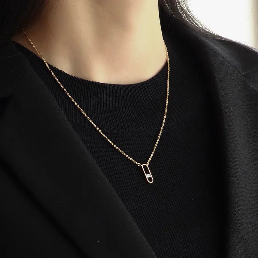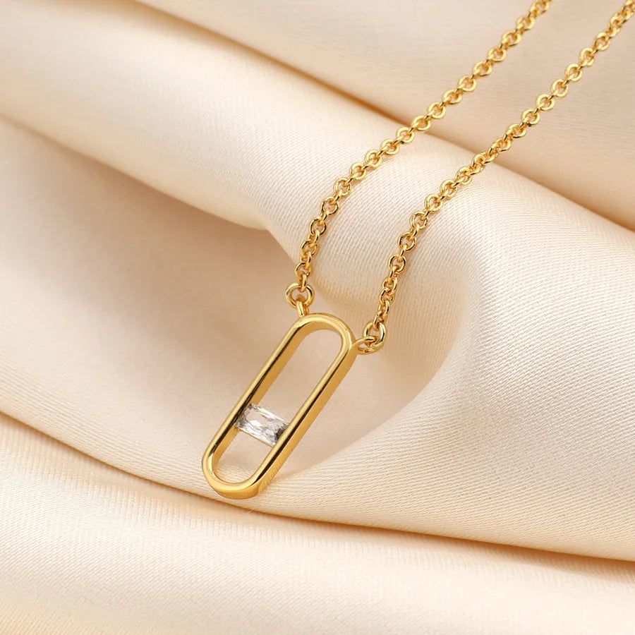 Elegant Zircon Necklace Ladies Fashion Retro Design Luxury Lightweight Square Pattern Copper Alloy Spring Buckle Four Seasons Suitable - Average Size / Gold