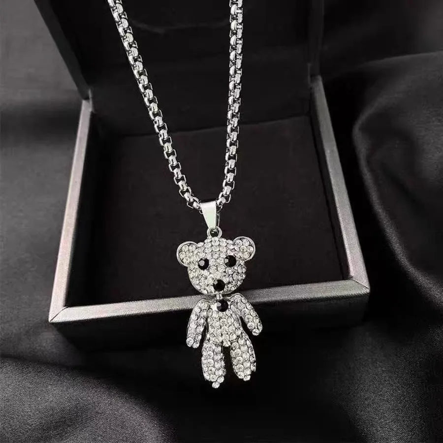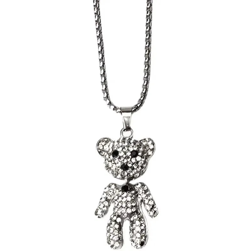 fashion bear alloy inlay rhinestones women's pendant necklace 1 piece - Xl0085 Full Diamond Bear with Steel Chain 70cm